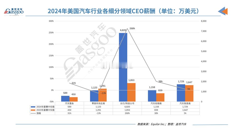 大家好奇不好奇,车企老板的薪酬是什么样的?在网上搜索了一下,2024年,任职至少两年的CEO群体中,薪酬中位数为1,220万美元,同比大涨35%。在美国汽车及相关行业企业的高管中,英伟达(Nvidia)和优步(Uber Technologies)的CEO 2024年薪酬最高。美国汽车制造商中薪酬最高的CEO是Mary Barra,2024年她从通用汽车获得的薪酬达29,818,313美元,同比增幅达12%。在所有CEO的薪酬总榜单中,Mary Barra排名第七。