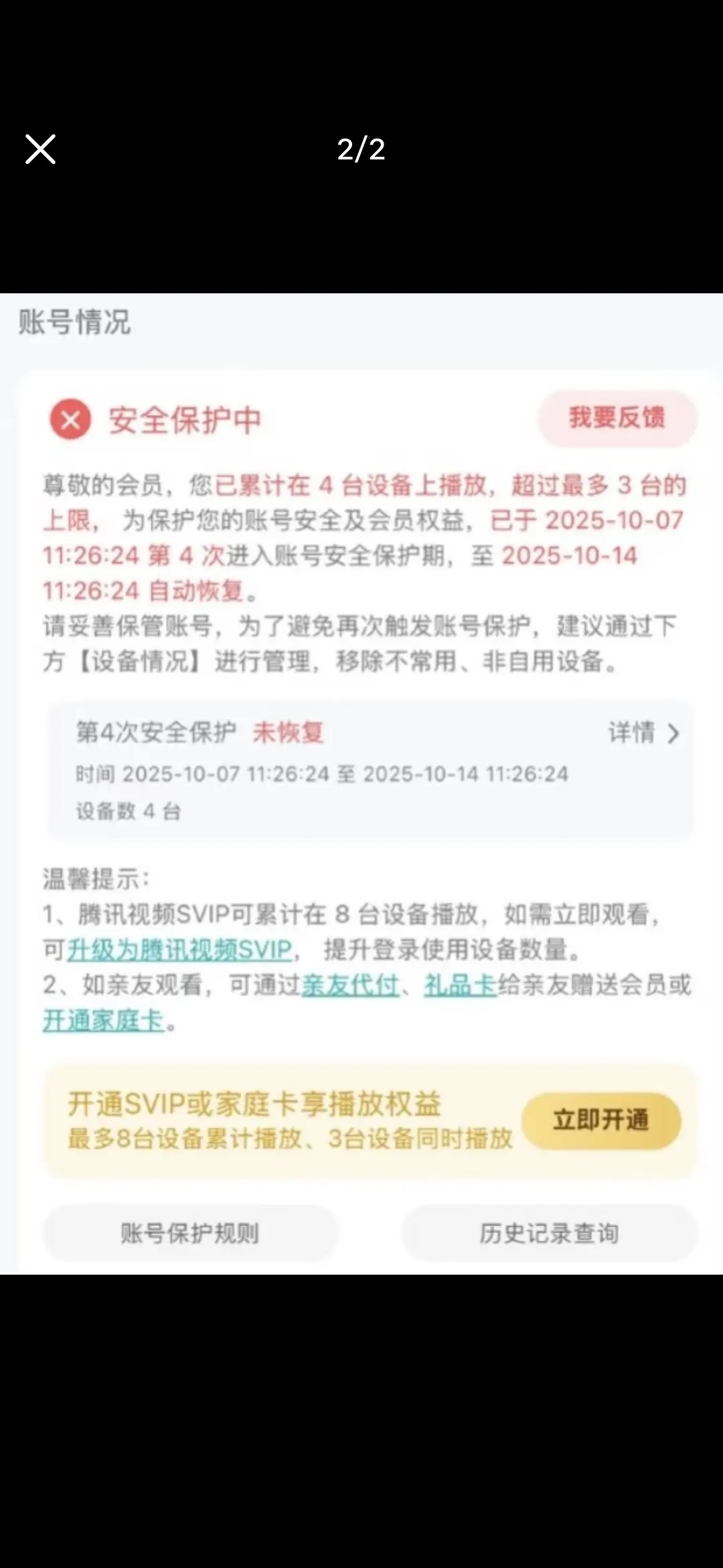 腾讯视频VIP超限新规曝光,多登1台设备禁看7天