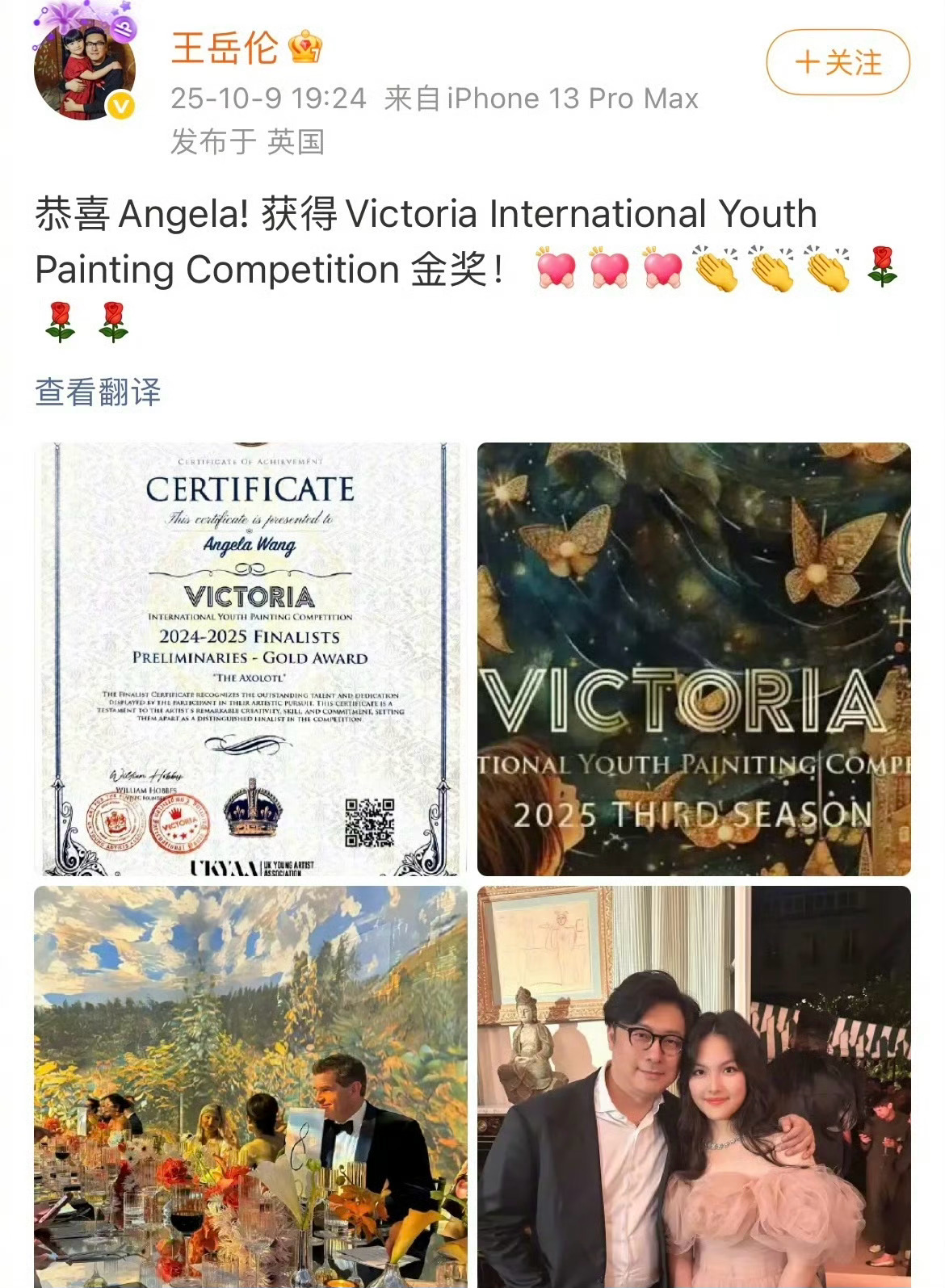 李湘王岳伦虽然离婚了,但对女儿的文案是一样的![柯基][柯基][柯基]王诗龄获维多利亚国际绘画大赛金奖