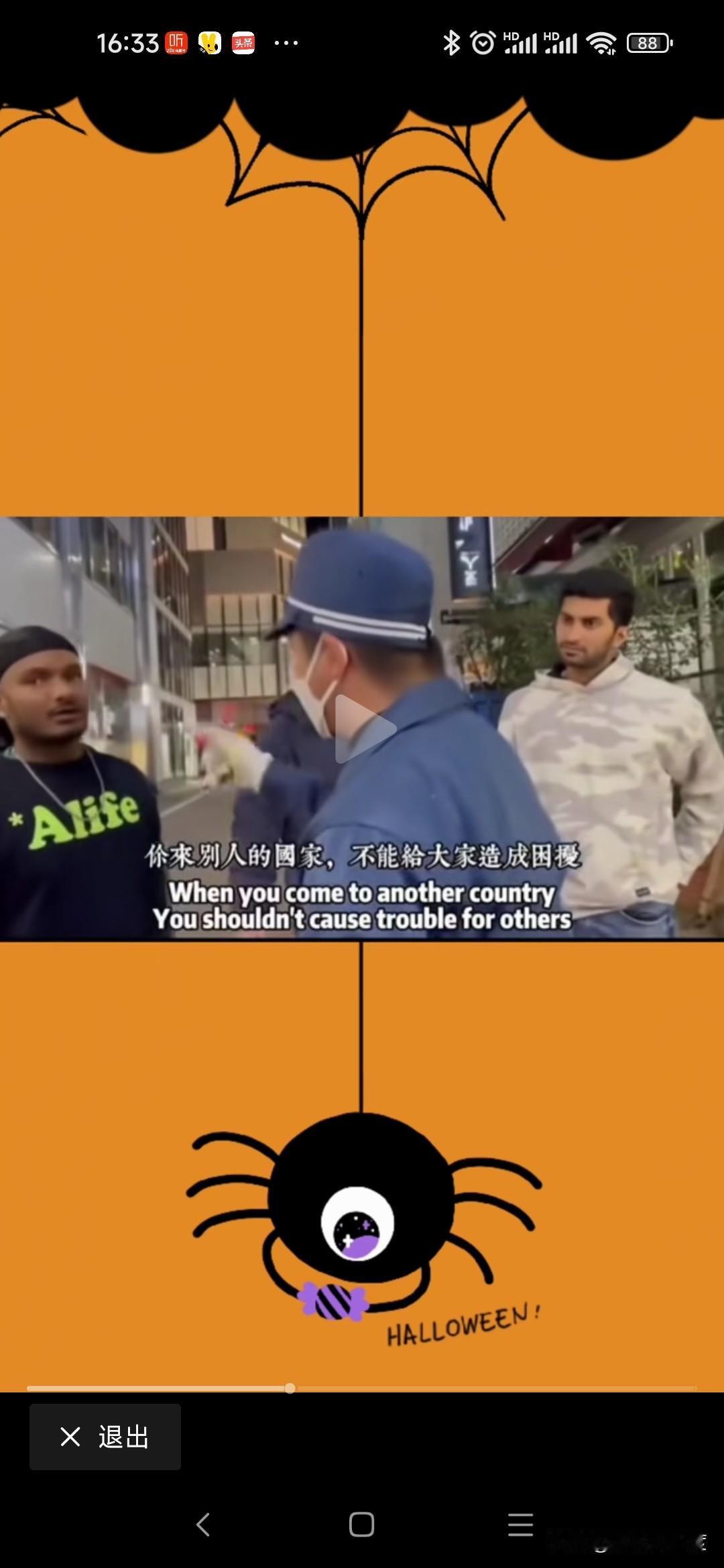 日本环卫工人怒怼印度阿三 看个视频,几名印度三哥在禁止抽烟的街头抽烟 一名日本环卫工人过去说 这个地方禁止吸烟,请到别处去 三哥说我们纳税了 环卫工人说和那些没关系,这里禁止吸烟! 三哥说你去死吧, 环卫工人怒怼你去死吧,不要在别人的国家给别人添麻烦。 三哥想围攻环卫工人,结果让他们中的一员拉开,环卫工人挺这胸膛和他们硬刚。 最终阿三撤离那里。 对犯错误的人应该勇敢站出来指正,管他哪里人! 试问咱们外包制度下的环卫工人会这么硬刚三哥吗?
