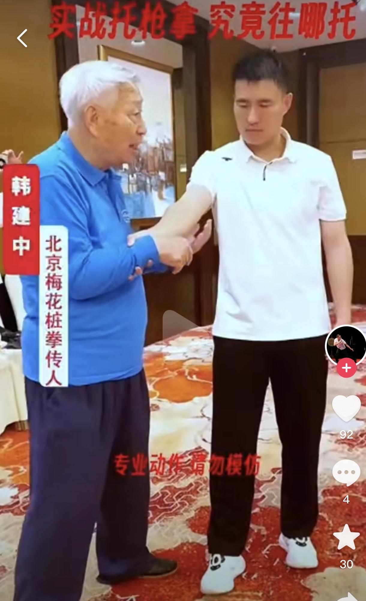 大家还认得图片里的这位老人吗? 有眼力的朋友可能还会认出来!没错,他就是韩建中老师! 想不到韩建中老师老了这么多了,我把他的印象可能还停留在十几年前吧!那时他讲话铿锵有力,头发乌黑,眼睛炯炯有神! 他在屏幕上经常是武术教练和指导嘉宾的角色!有的网友不知好歹的说,这是练传统武术的,他能打吗?是不是像马保国那样啊? 大家有所不知的是,韩建中老师可是实打实的练家子,他曾担任人民公安大学的高级教官,任1990年任亚运会团体操“中华武术”刀术表演的总教练!著有《梅花桩》等十几本武术著作,还担任了2006和2007年武林大会的总裁判长! 尽管韩老师现在已经八十多岁了,但他还开通了自媒体账号和大家继续讲解关于武术的知识,有时侯还会亲自上手指导年轻一辈,功底深厚实在是令人佩服! 在此支持韩老师,祝福韩老师!