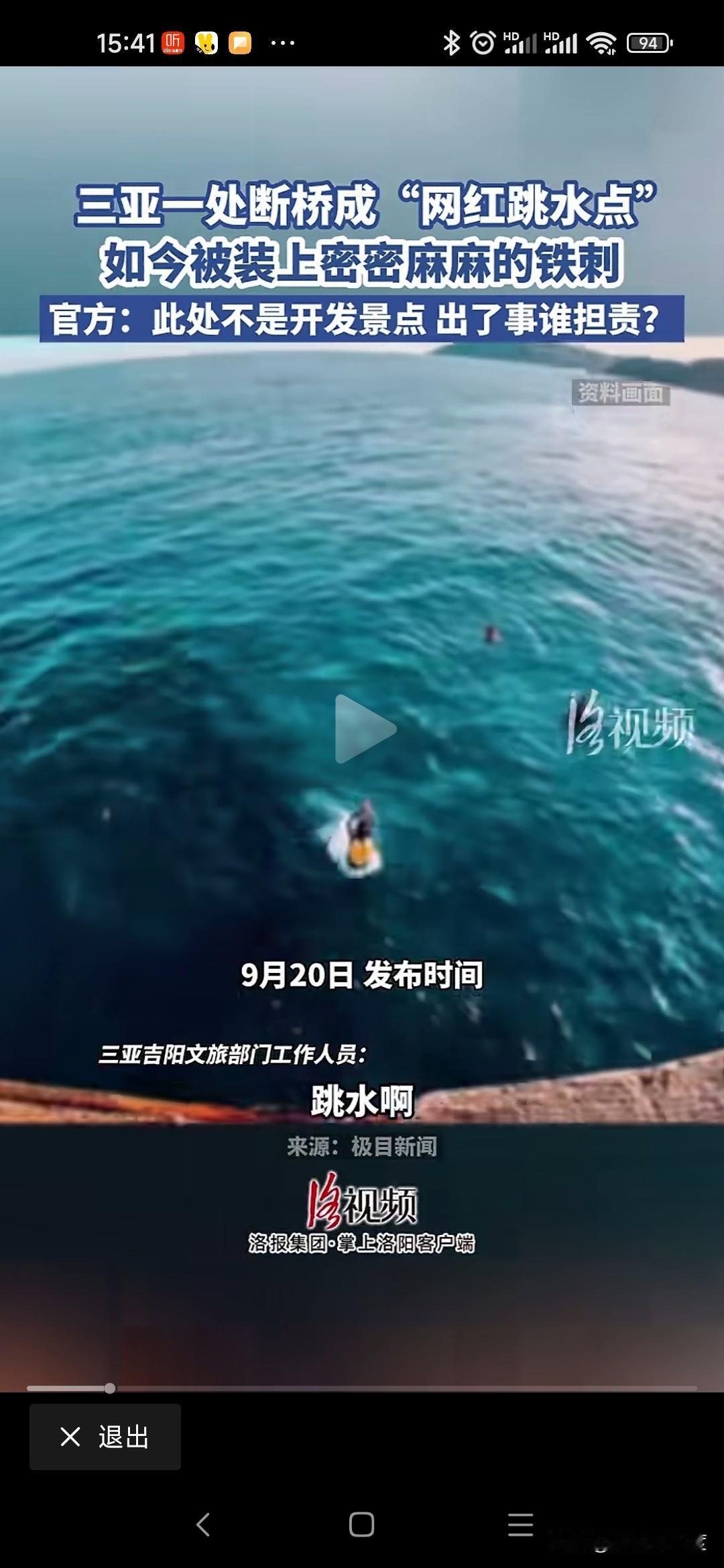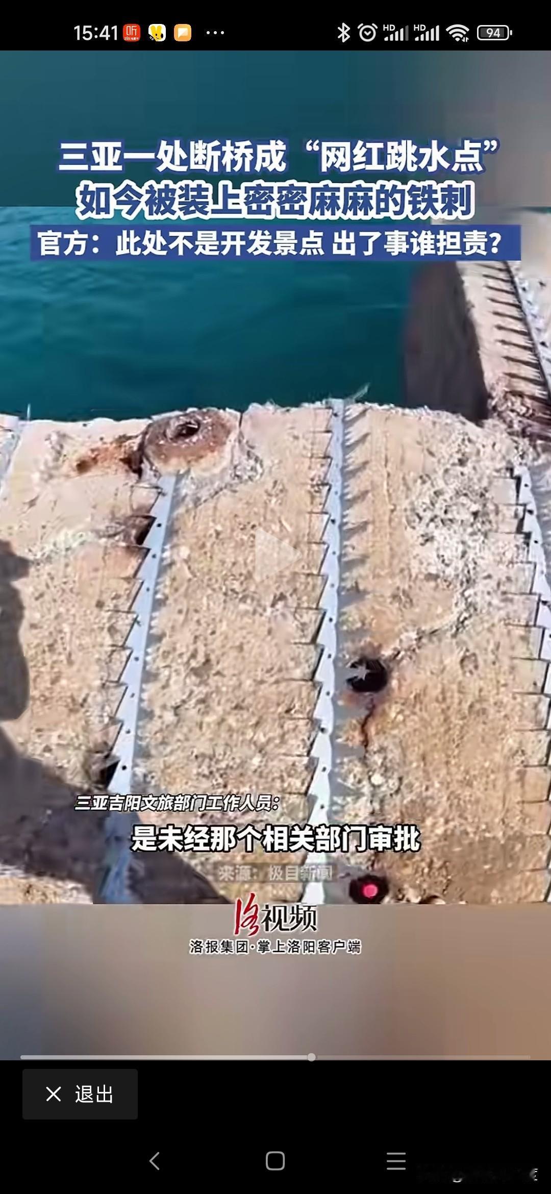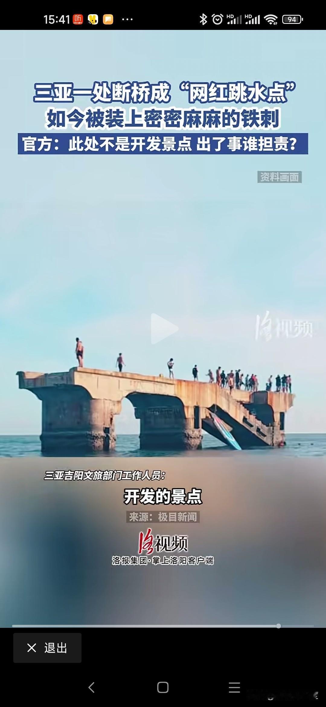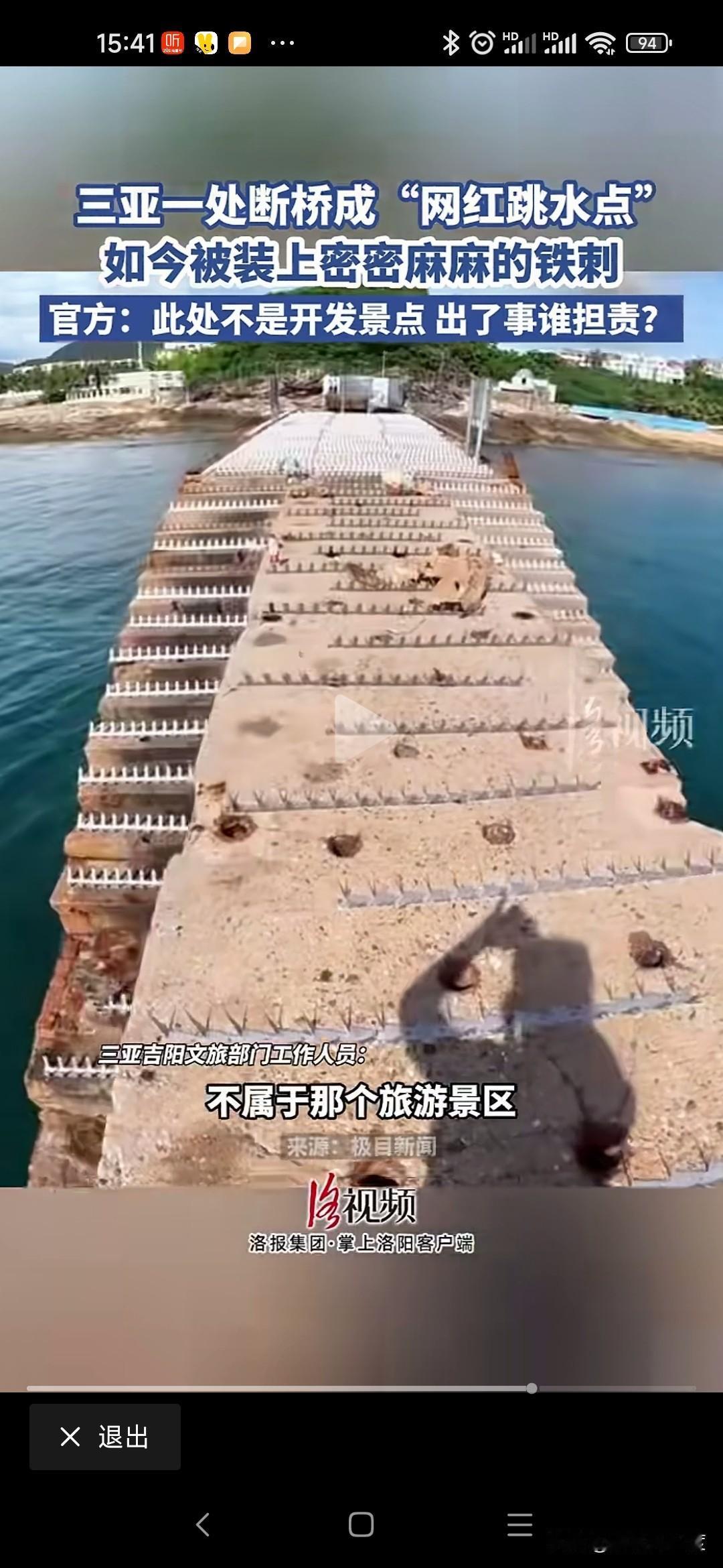 网红断桥跳水处应该装倒刺 三亚市某网红断桥处,成为新晋网红打卡地 网友发现风景