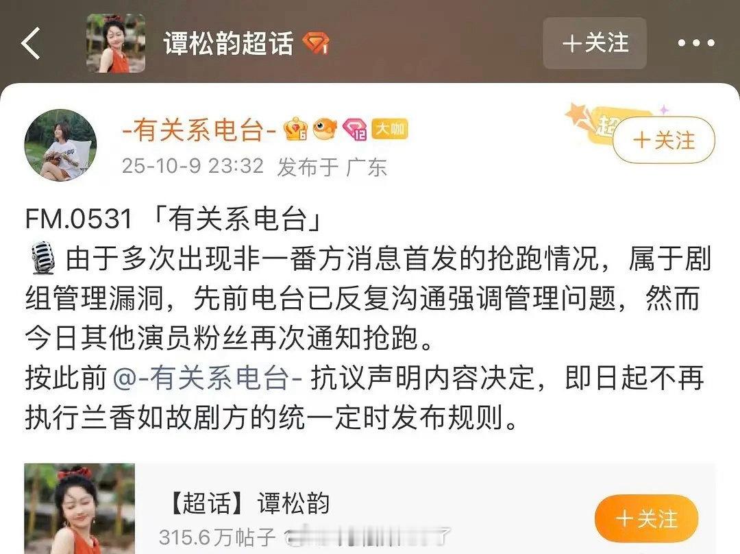 《兰香如故》撕起来了,因为郑合惠子对接比一番女主谭松韵的对接发物料时间早25分钟,引发谭松韵对接不满。
