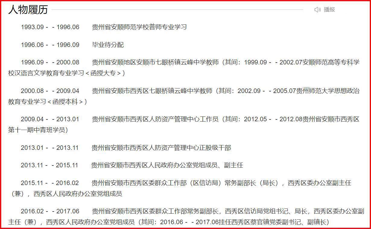 贵州省安顺市西秀区的黄兴旺跟我是同龄人,都当过老师,不过后来他从学校调到其他单位工作,事业发展不错。他1996年毕业于安顺师范学校普师专业,中专学历的师范生一般是教小学。也许是安顺地区的师资力量紧缺,他分配到安顺市七眼桥镇云峰中学教初中。 黄老师在乡镇初中工作了十几年,为农村教育奉献青春的精神可嘉。他工作之余学习充电,拿到了安顺师范高等专科学校的函授大专学历和贵州师范大学的函授本科学历。本以为会在乡下教一辈子书,没想到幸运女神眷顾了他。 也许是他扎根基层教育的毅力感动了人们,再加上他有本科学历,工作能力出众。2009他的人生迎来了新的转折点,从学校调到安顺市西秀区的其他单位工作,事业发展一帆风顺。 跟黄老师相比,有些师范毕业的中专生忙于工作,没想到抽出时间去提高学历,经常拿上班太累了、没时间作为不求上进的借口。我一个同学也是中等师范毕业教小学,下班了总是在外面玩,这么多年一直是中专学历。单位选拔人才很重视学历,他因为学历低错过了晋升的机会,所以机会都是留给有准备的人。