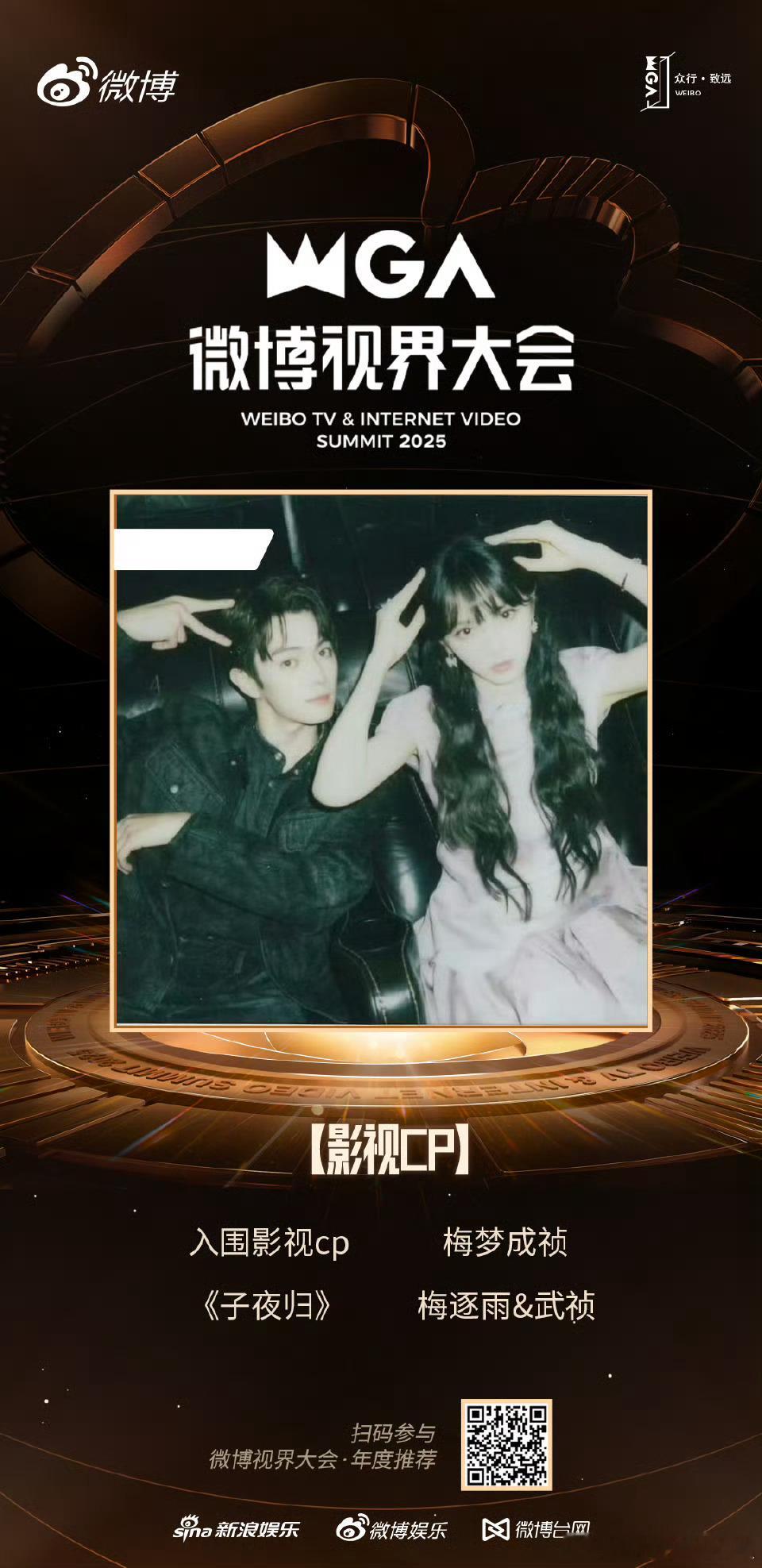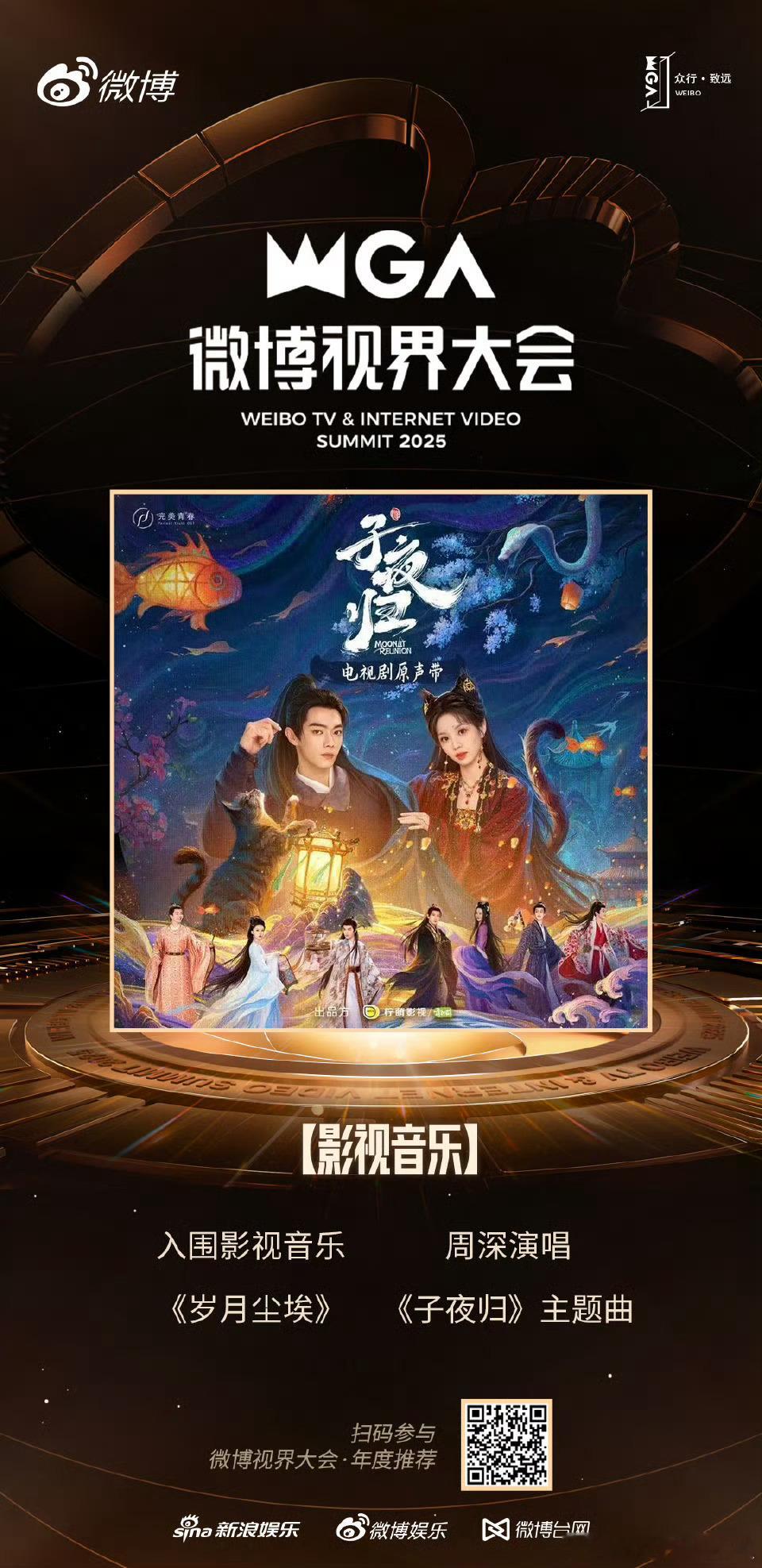许凯田曦薇《子夜归》剧集、影视cp、ost都入围了2025微博视界大会年度