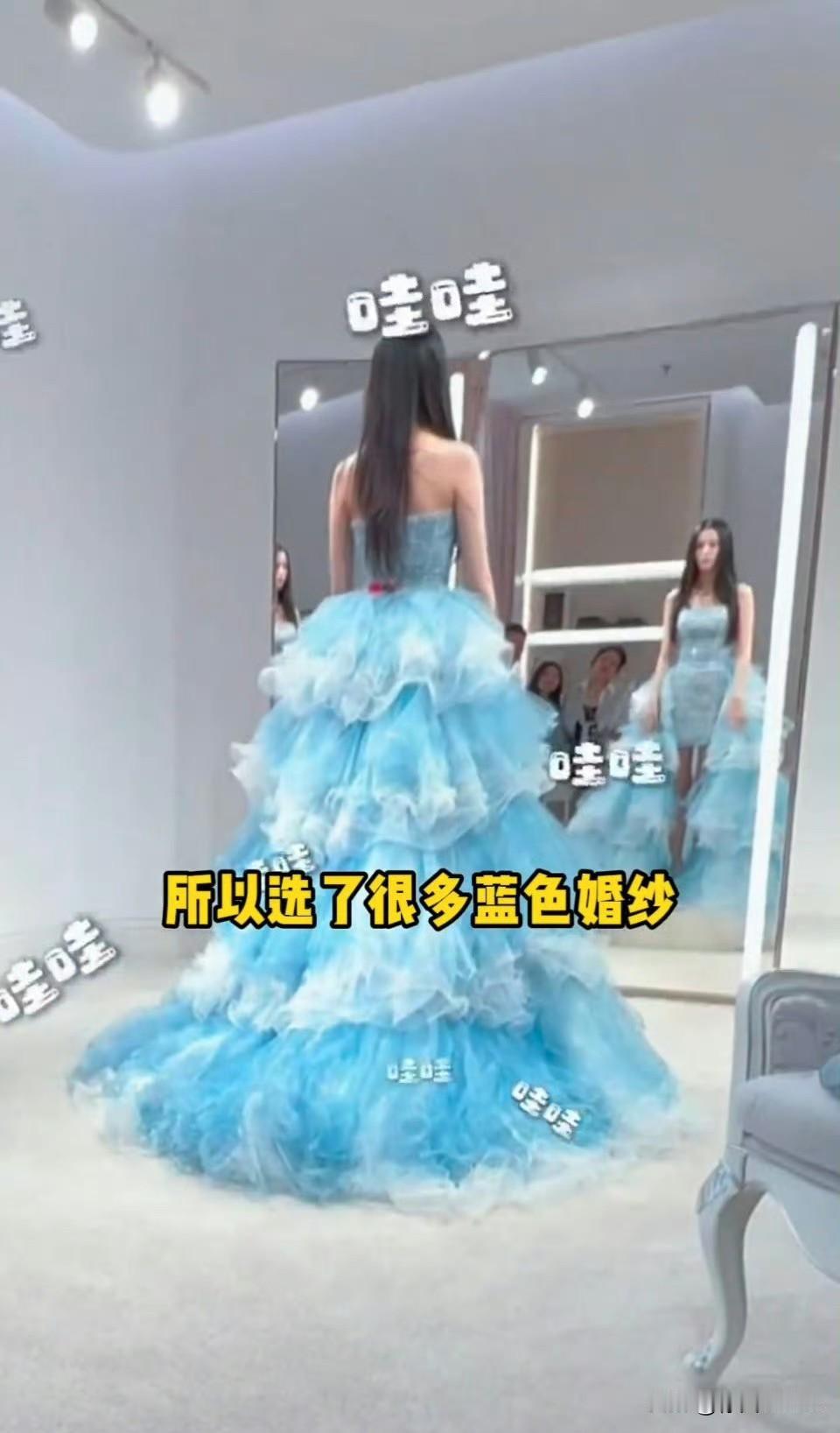 10月10日,徐艺洋分享12套婚纱,主纱华丽但透着怪异,相比其他色,确实更适合蓝