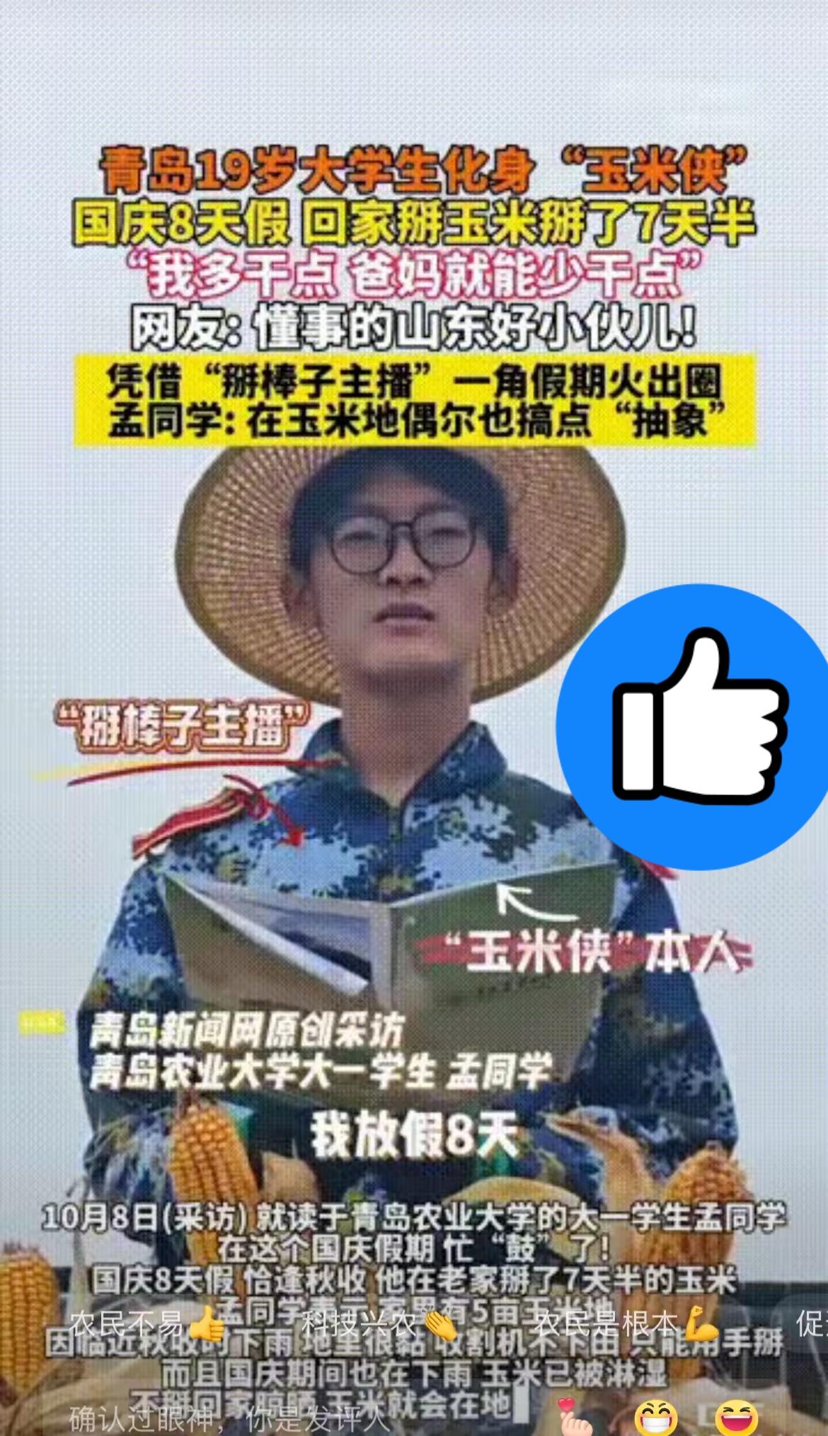 国庆假期,别人晒旅游,青岛这位大一男生却在玉米地“渡劫”! 带俩同学狂干7天
