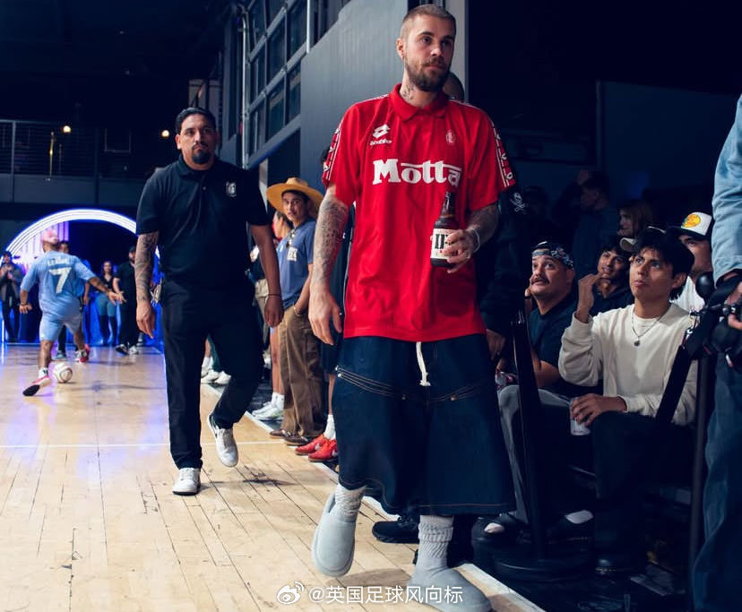 一场在洛杉矶举行的五人制足球比赛,贾斯汀比伯身穿1993-94赛季AC米兰复古训练球衣参加。