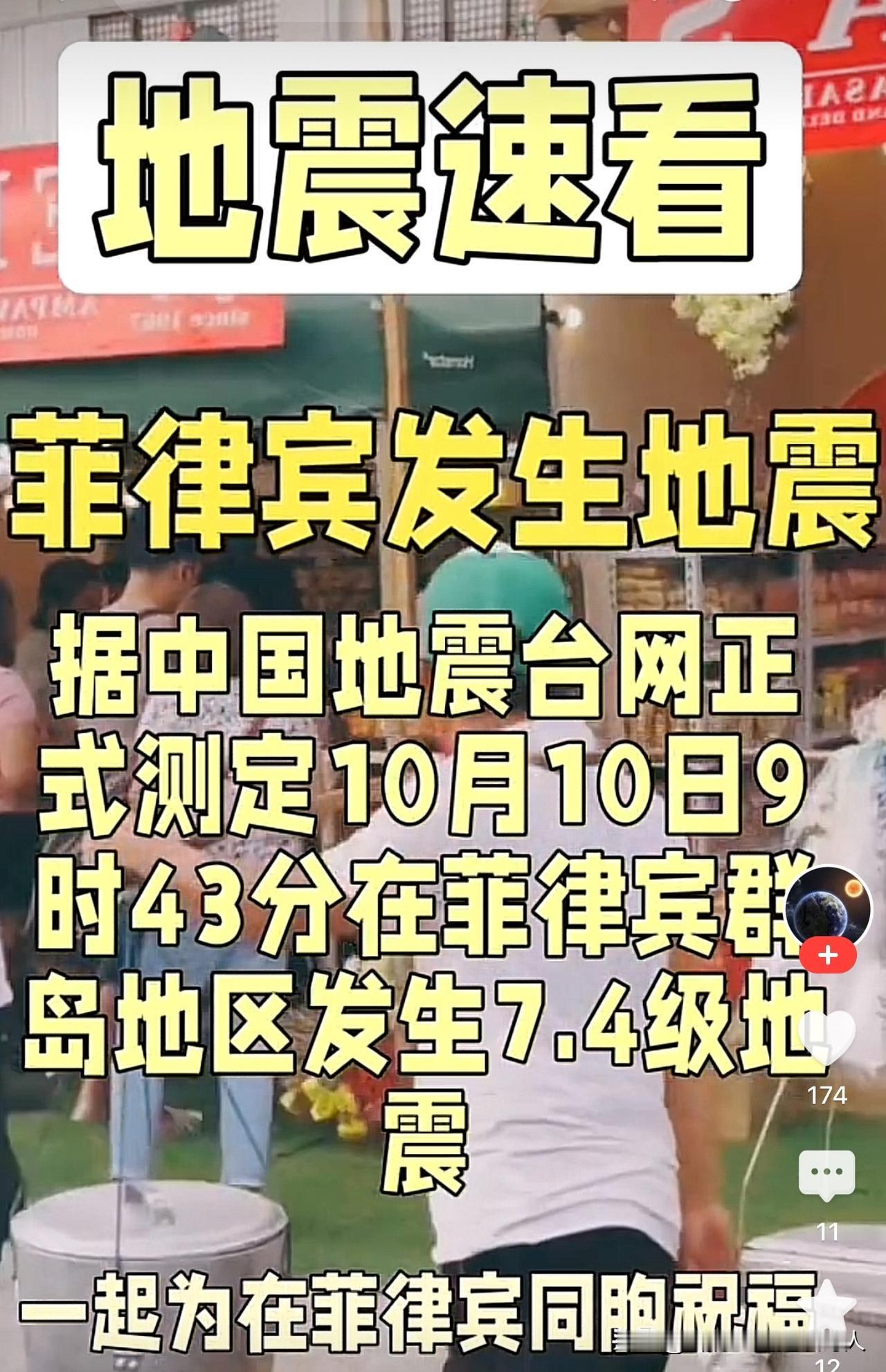 突发,10月10日,上午9点44分,小菲棉兰老岛发生7.3级地震,并触发海啸预警