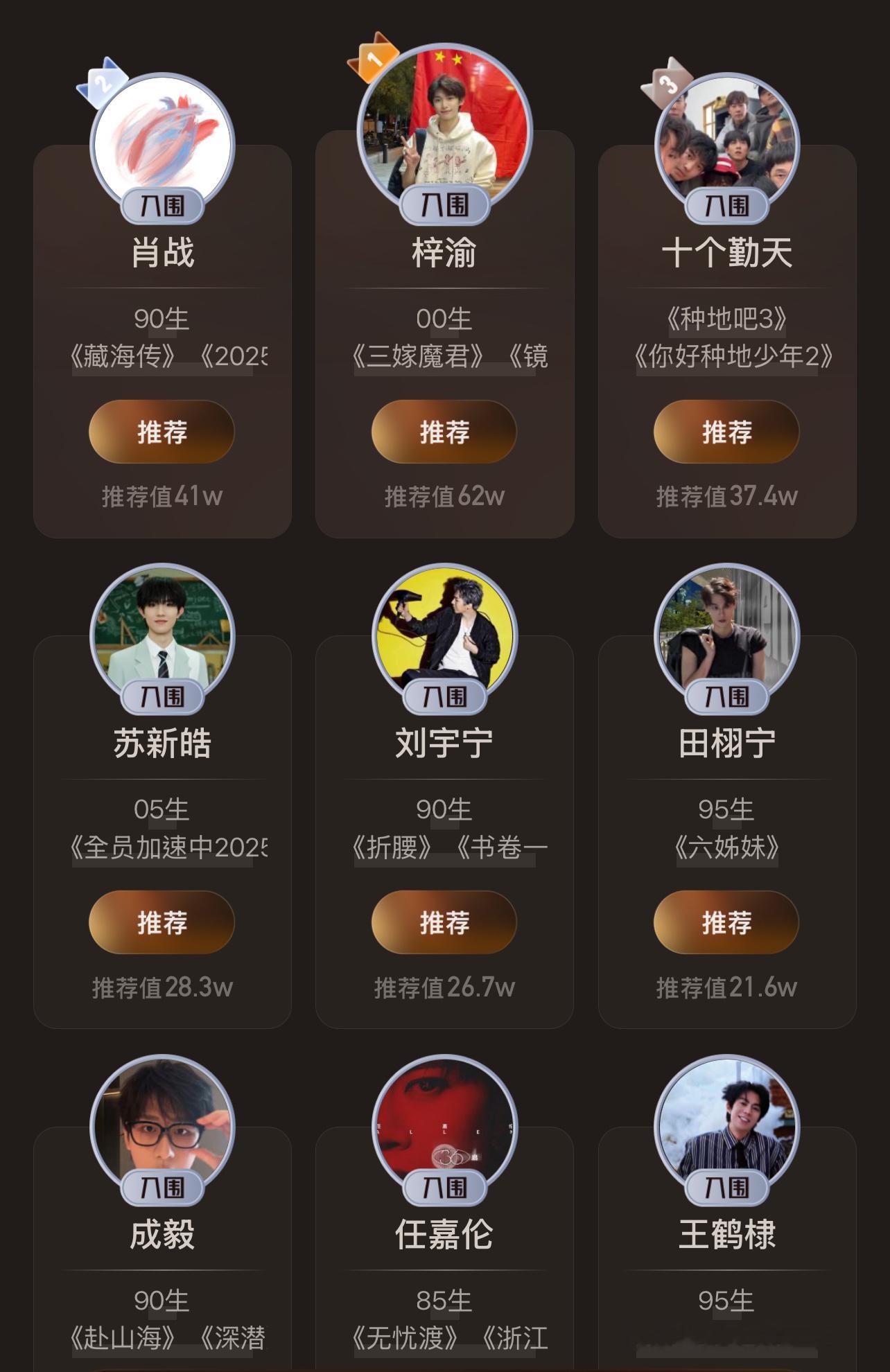 梓渝第一,肖战第二,十个勤天第三,苏新皓第四,田栩宁第六,成毅第七![吃瓜][吃