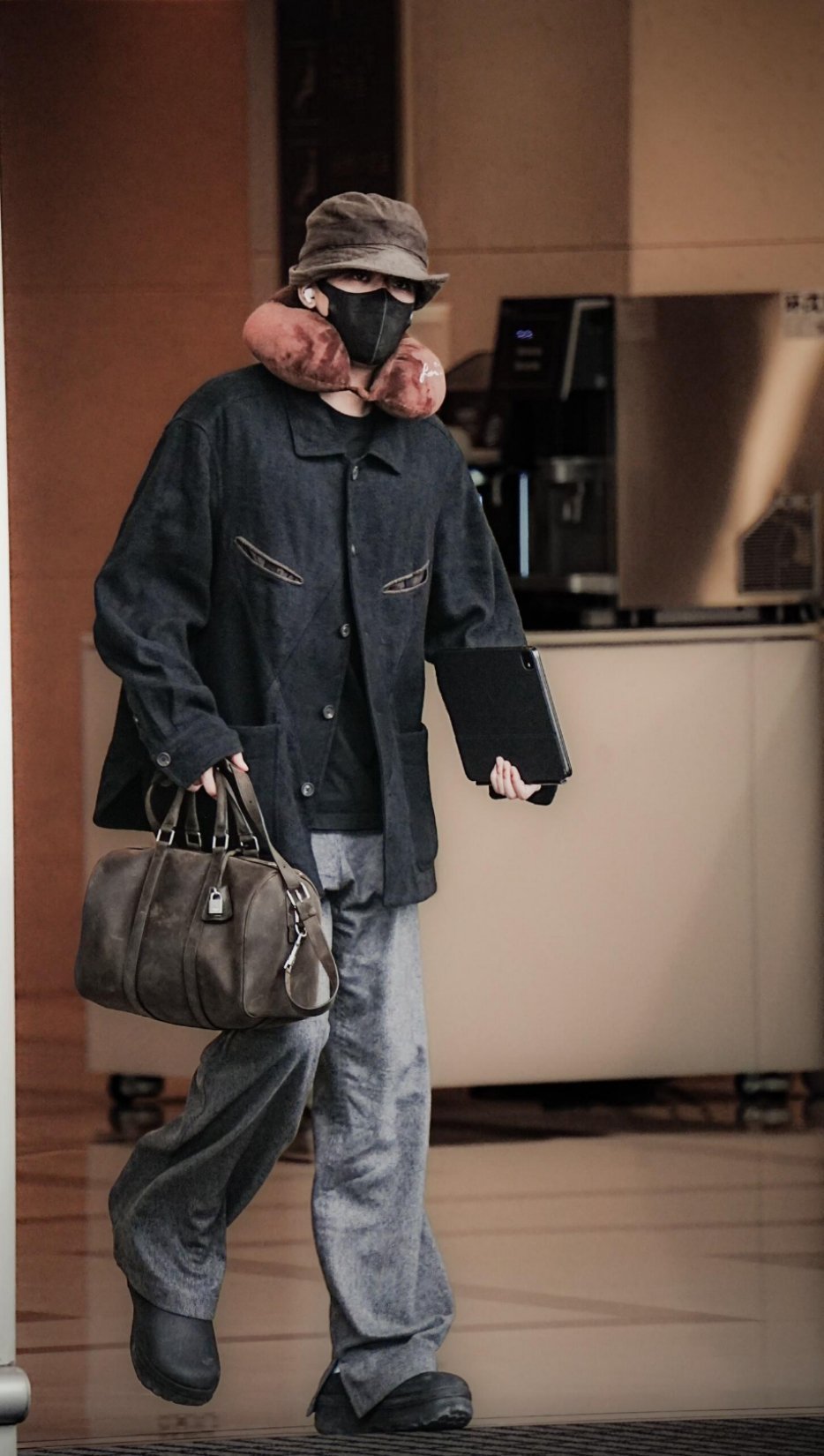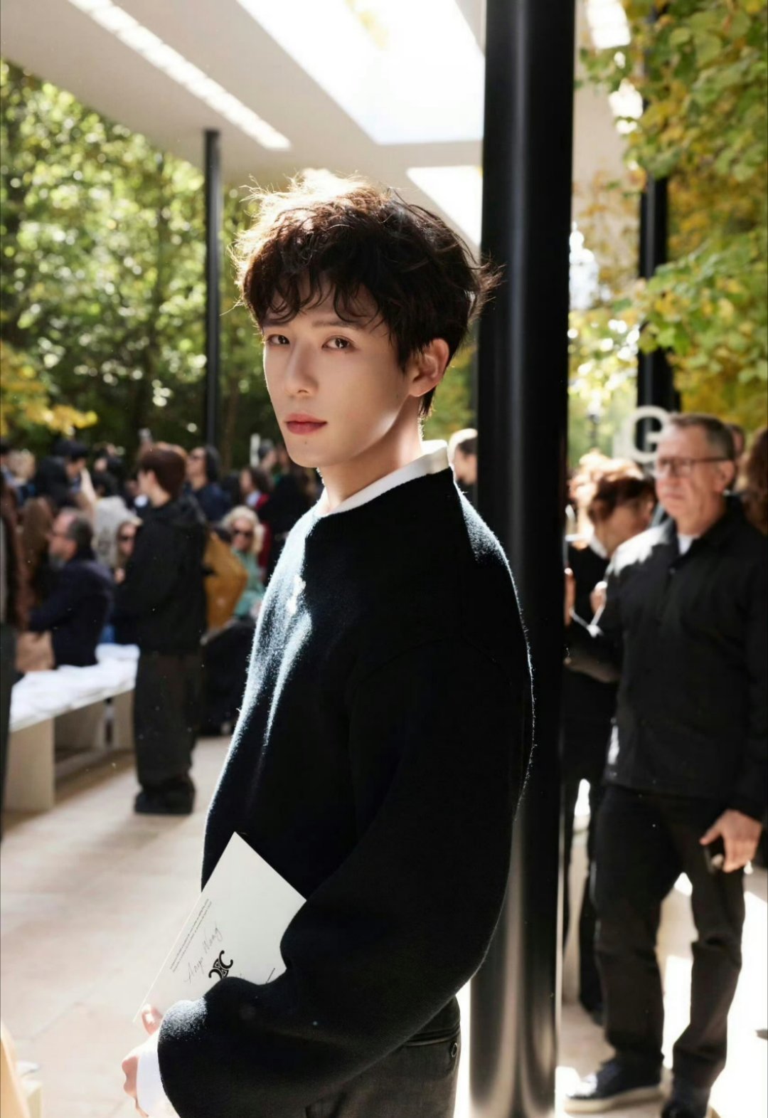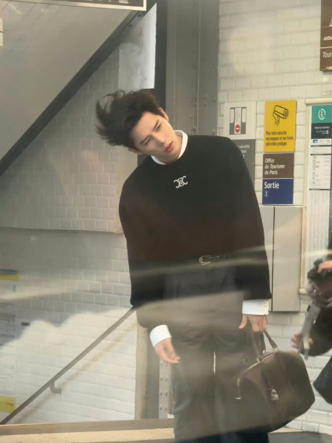 王安宇在巴黎怎么敢这样背包的一整个就是潮男穿搭,可太帅了,不过包的拉链是不是忘记了