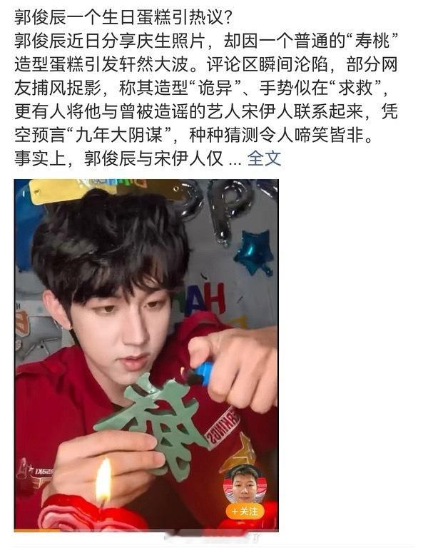 郭俊辰工作室发声明辟谣,因为前几天郭俊辰过生日的照片和视频被网友解读为“求救”。