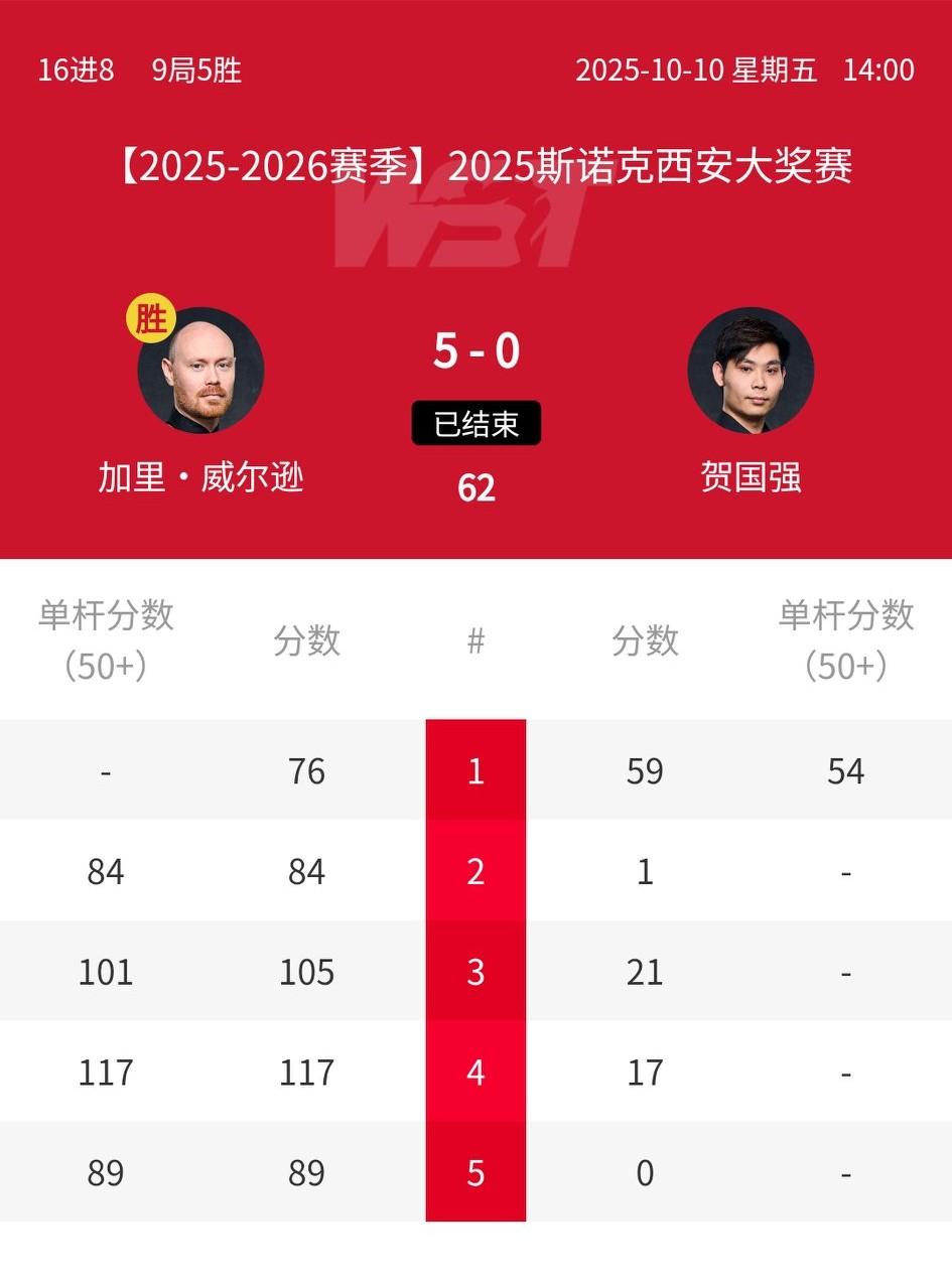 下午看斯诺克直播看了个寂寞!两场均被零封,魔术师和咖哩这么强吗?囧哥因为妻子重病状态不在线,但国强昨天刚刚绝杀强大的萝卜,状态不对啊。 墨菲5-0凯伦威尔逊 加里威尔逊5-0国强