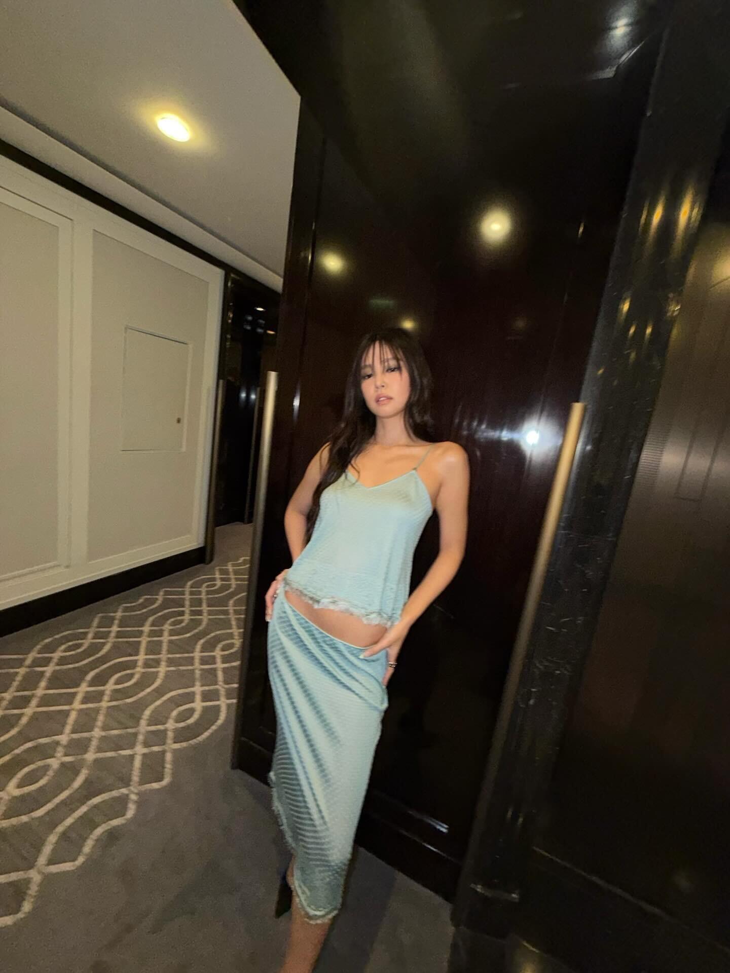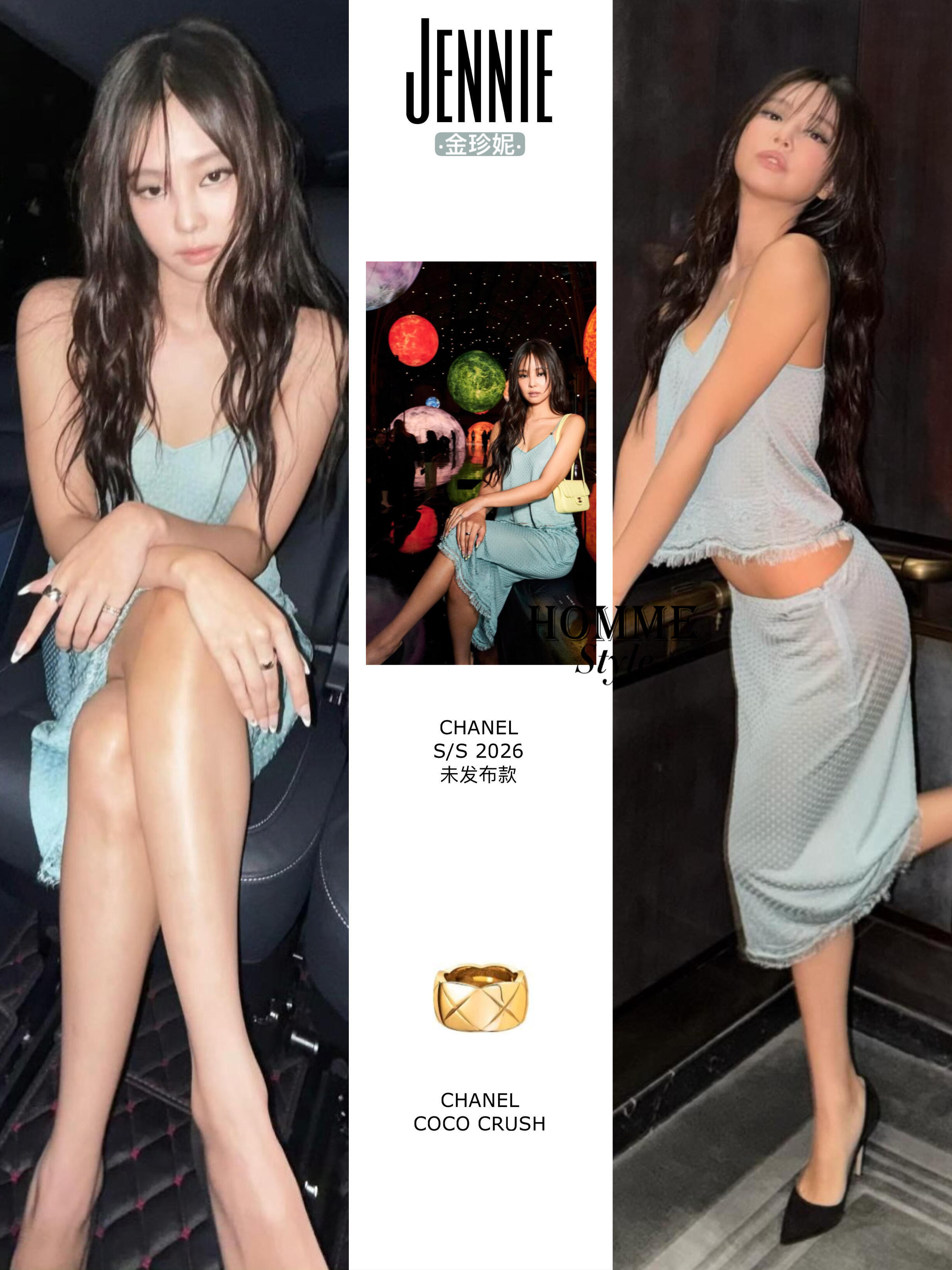 Jennie x 巴黎看秀蓝色吊带裙好纯欲[期待]