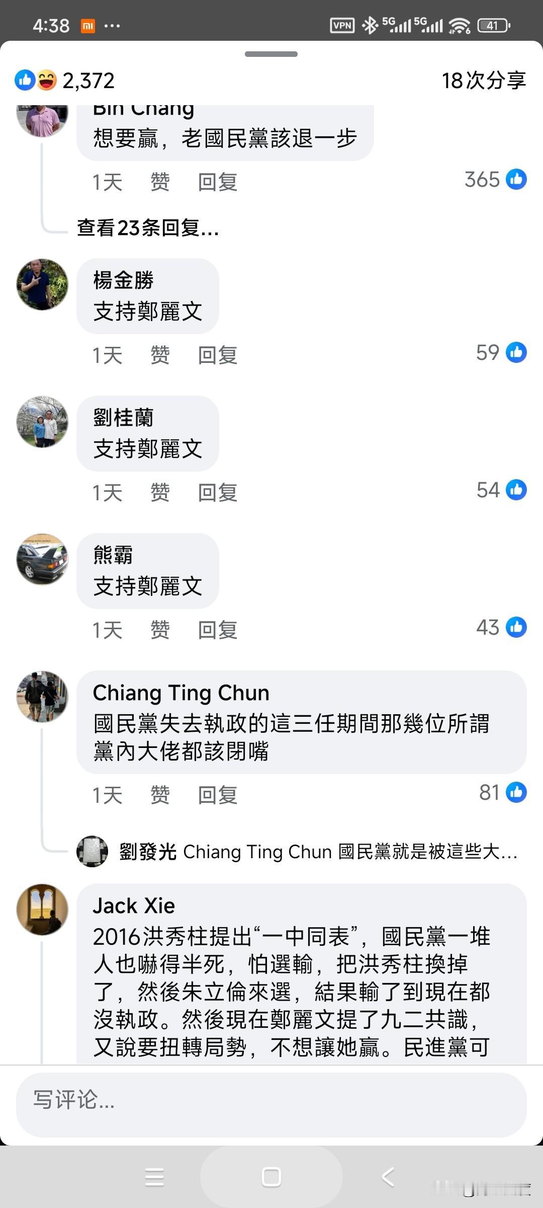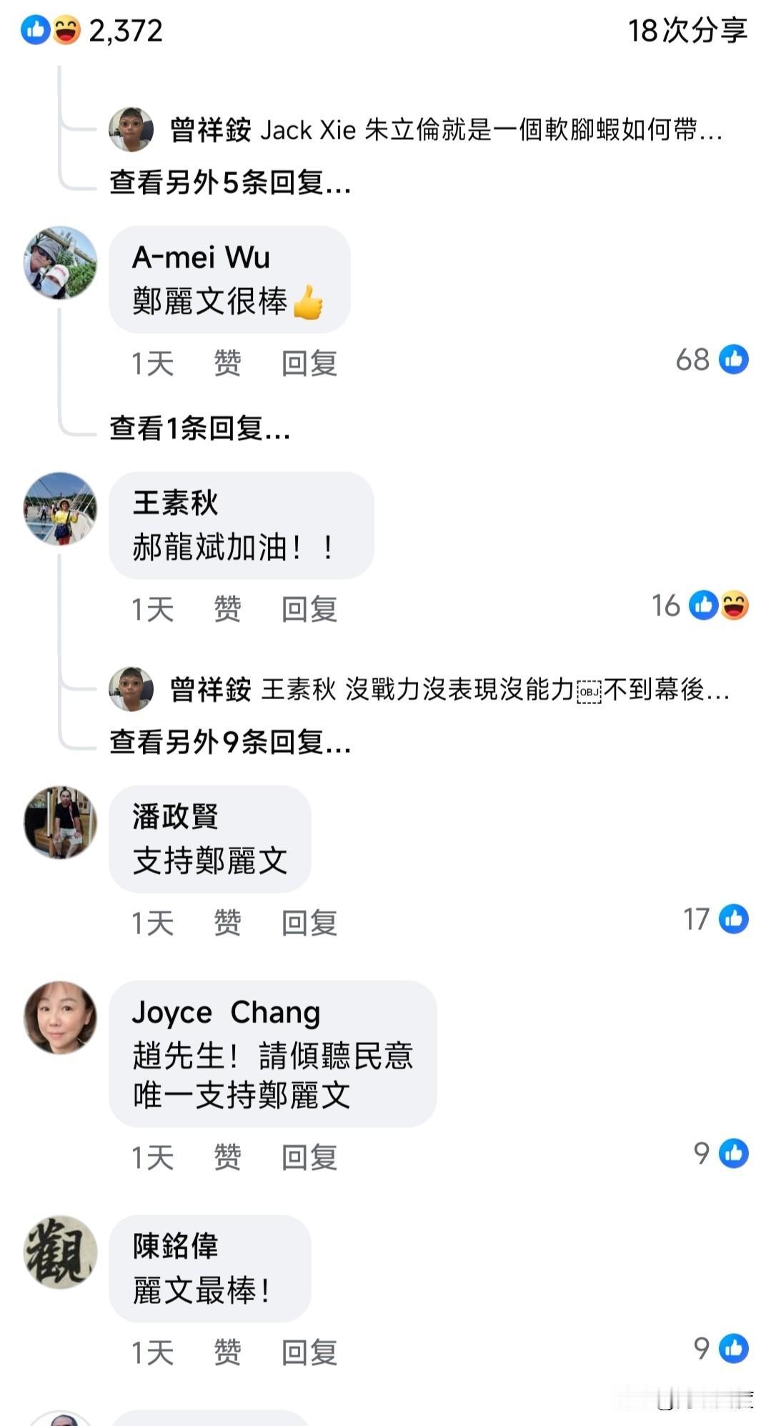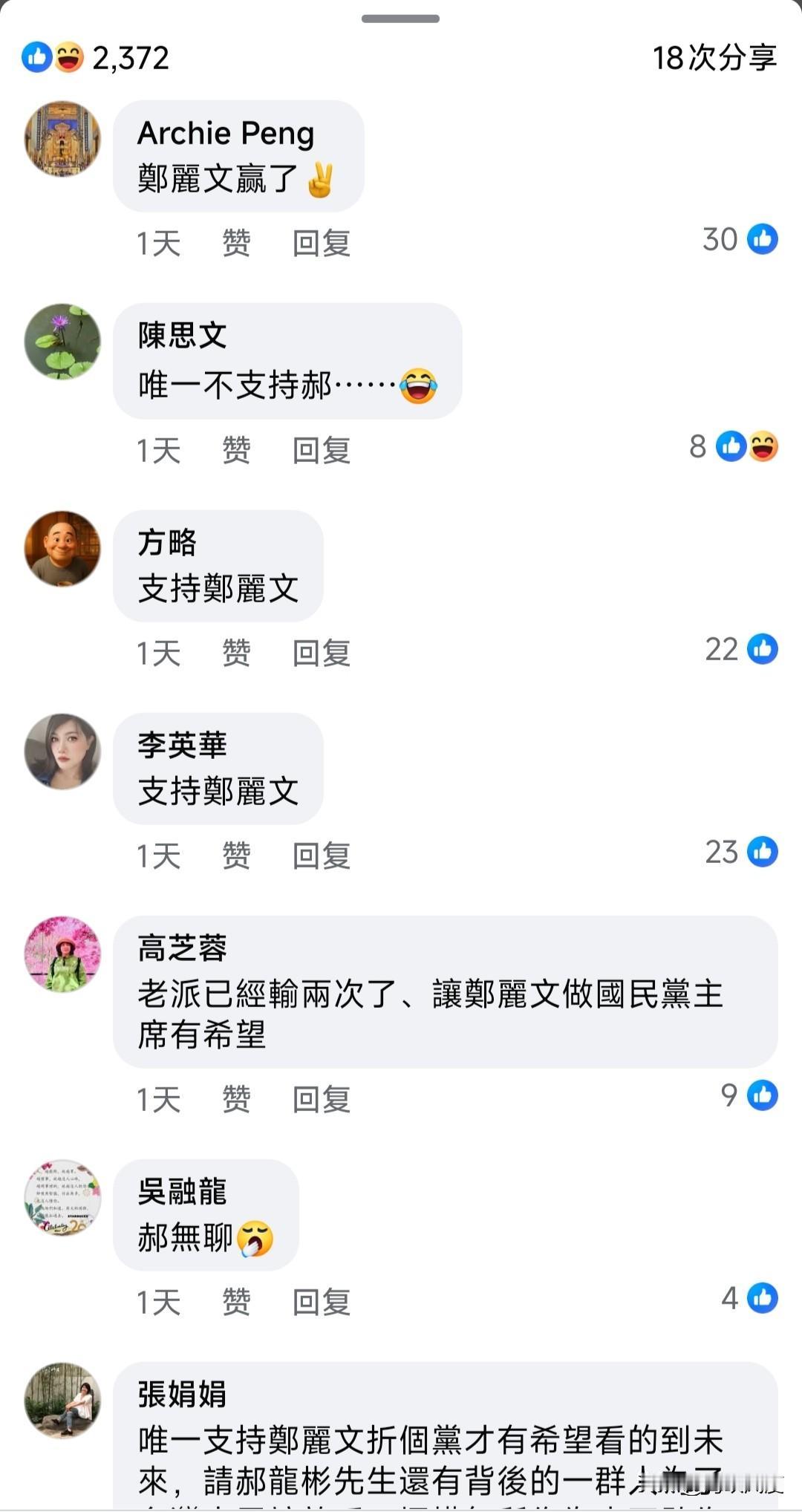 TVBS《少康战情室》在YT频道带风向,被千条留言惨遭洗版!《少康战情室》日前在YT上以【幕后/国民党迎来“郑主席”?郝阵营急找卢秀燕、韩国瑜救援:2028才有救】 大家怎么看呢? 国民党郑丽文郝龙斌。 帖子发出后一天时间,收到千条留言,除有网友零星提到郝龙斌名字外,绝大多数网友一边倒点名支持郑丽文! 不知郝龙斌、赵少康看到后会不会又怒斥,这是大陆组织网军干的?! 好吧,郝赵既然如此掩耳盗铃,什么都推给大陆网友,那就等着10月18日那天如何唾面自干吧!
