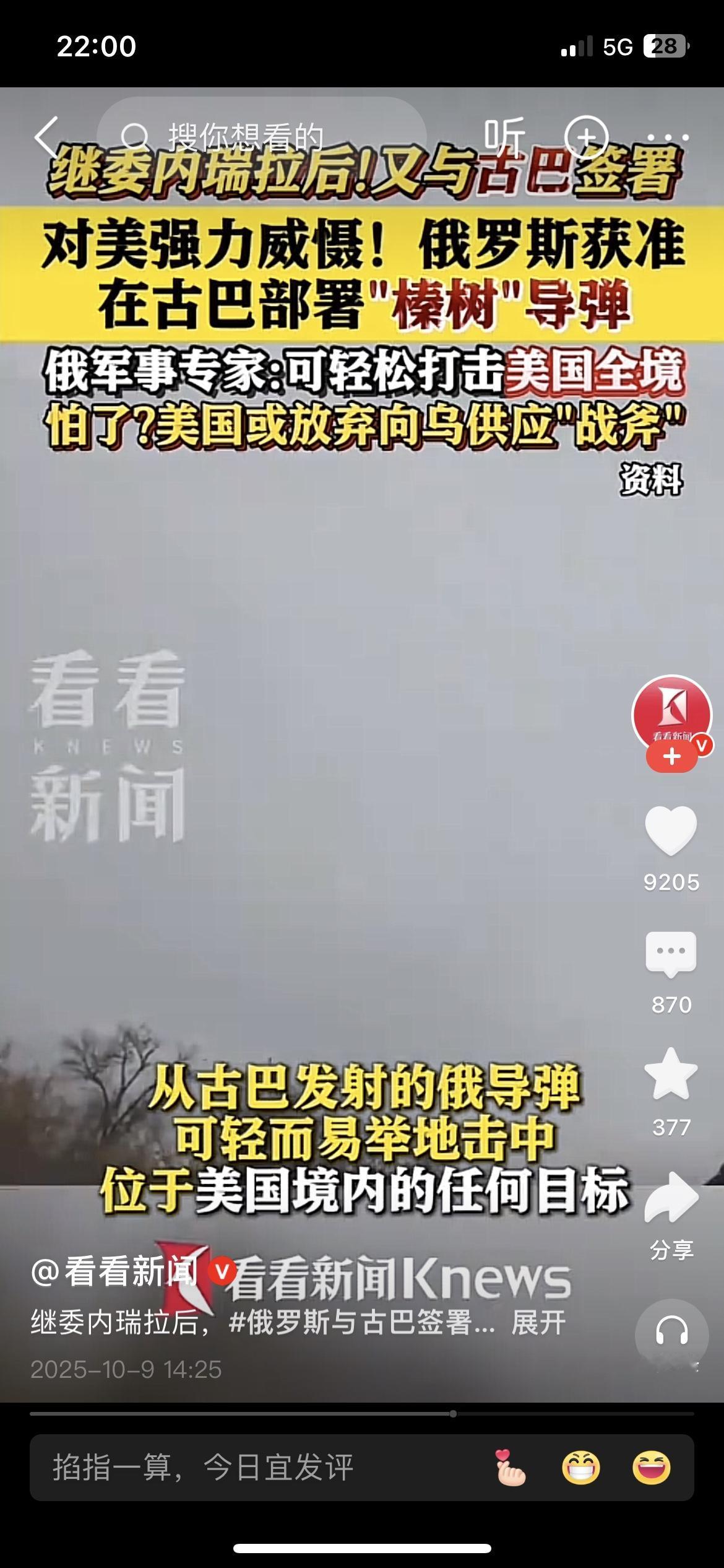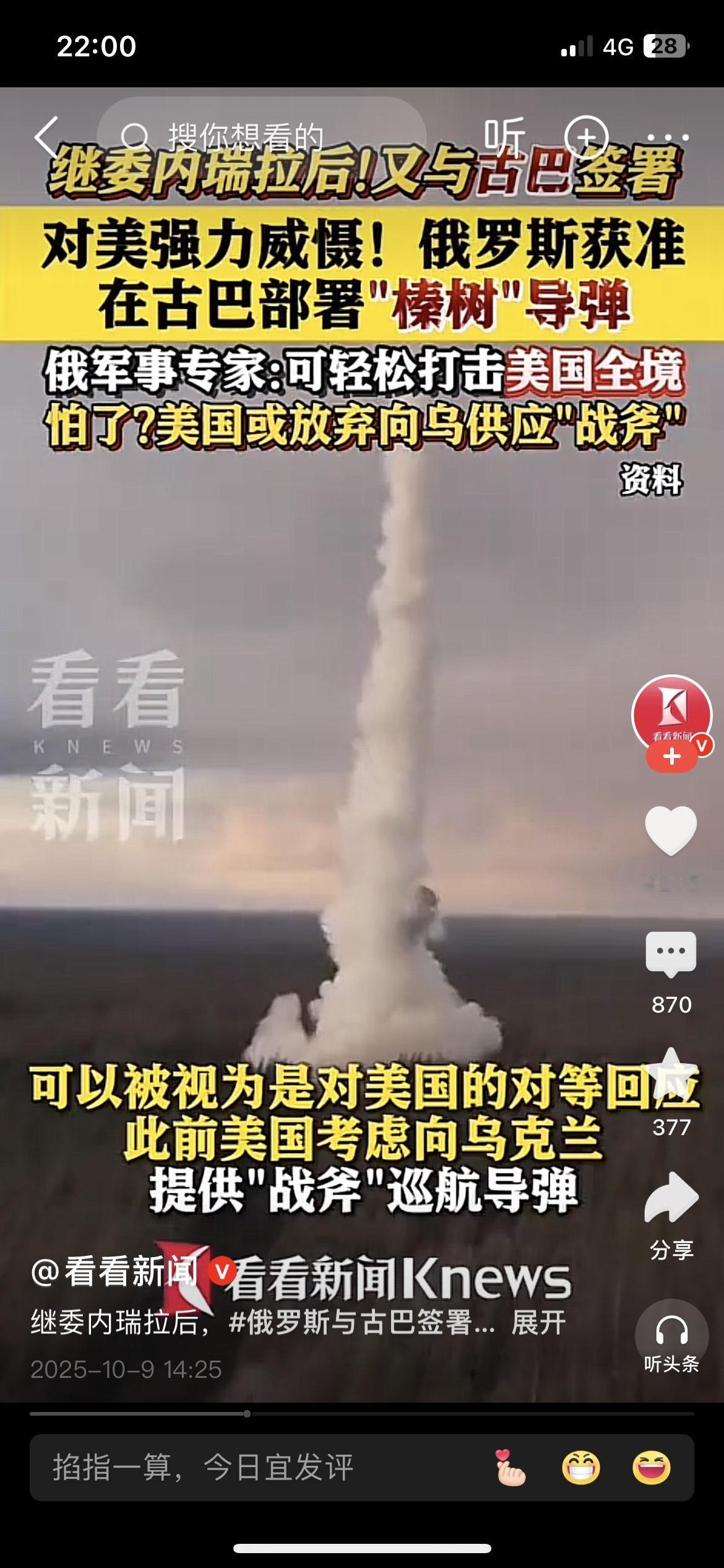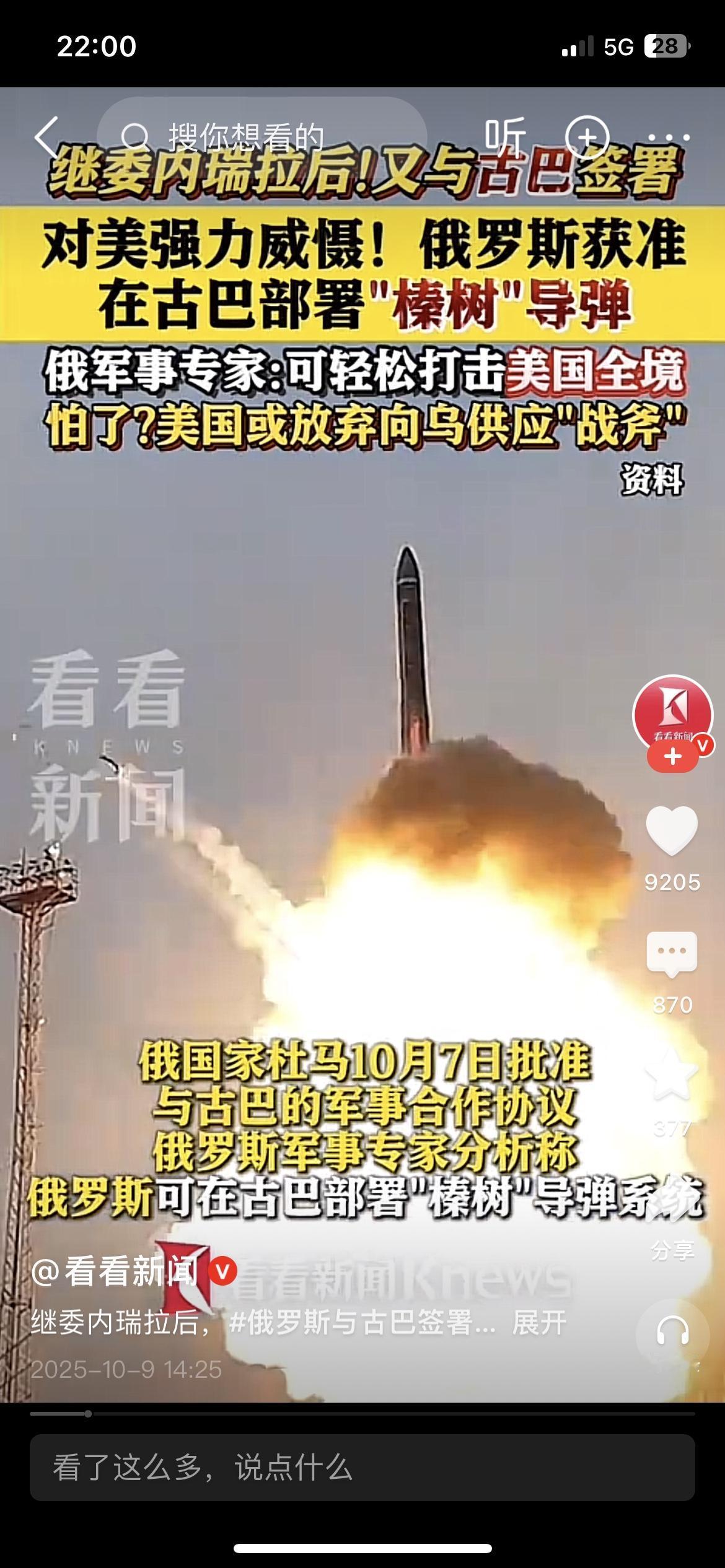 俄罗斯在古巴部署导弹,能打美国全境!美国怕了?这波威慑绝了! 家人们!俄罗斯获准在古巴部署“榛树”导弹了,俄军事专家说这玩意儿能轻松打击美国全境!而且美国可能因为这事儿,放弃向乌克兰供应“战斧”导弹了。这波对美威慑操作也太猛了,你们觉得美国会咋应对?来评论区唠唠你的看法~战斧导弹 俄罗斯导弹 战斧式导弹 俄罗斯新型导弹
