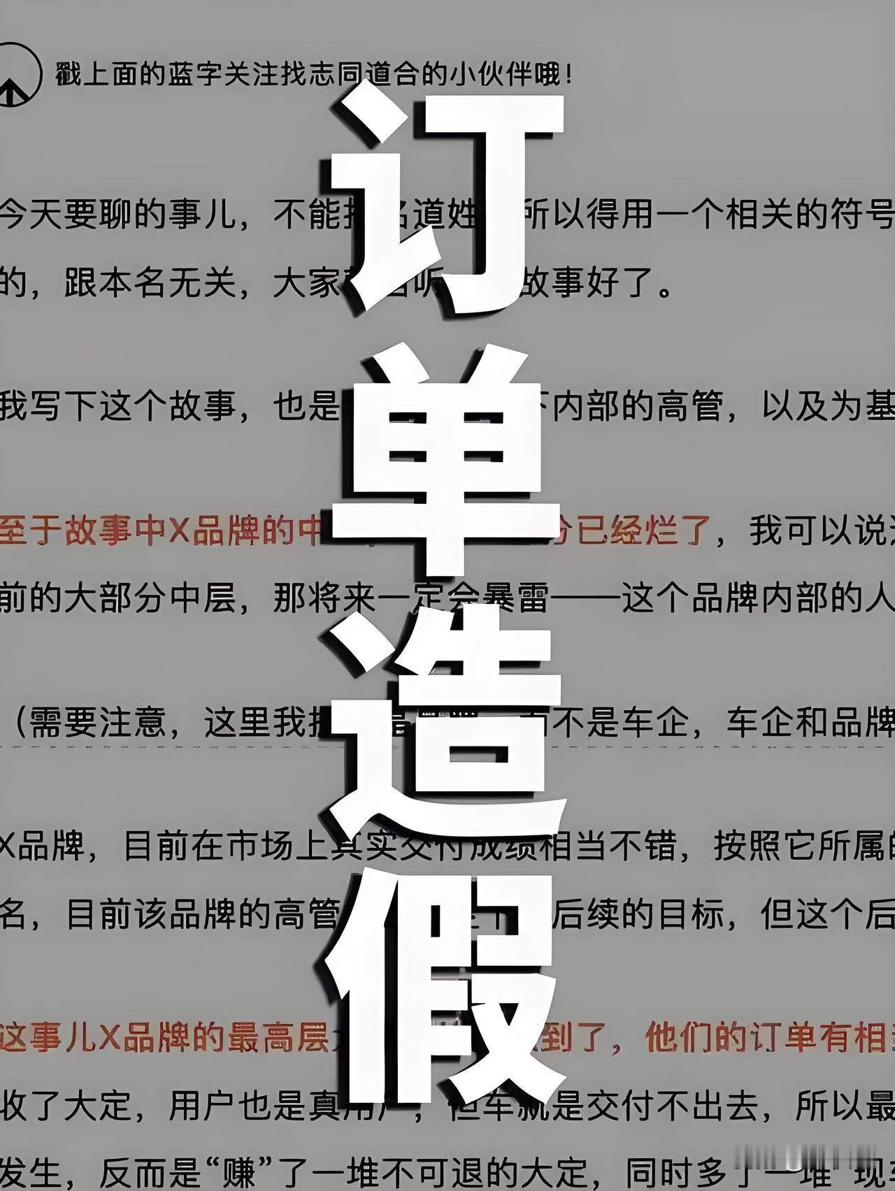 终于有大媒体来说这个事了,汽车注水订单,订单造假,什么几分钟破万,一个小时破十万,据统计,汽车巅峰的时候一年才卖2900万,还包括轿车MPV货车 而今年刚刚九个月的时间,轿车,SUV,MPV的销量,都已经突破5000万的销量了,不管是谁开个发布会就卖几万台车,这是啥概念?都这么富裕了吗?买个车跟买手机一样? 现在知道了吧,都是制造假象,一半以上的订单都是假的,这你受得了吗,现在改数据造假以后,就敢在车上给你造假,汽车行业拼的是产品质量和服务,而不是数字游戏 一直跟你们说,买车不是小件儿,一定要谨慎购买,远离那些爱吹牛,尤其是法务比较厉害的品牌,你还可以不了解国产车但是你总应该了解自己人什么德行吧?各位加着95号8块多的乙醇汽车车主们请长点记性吧!