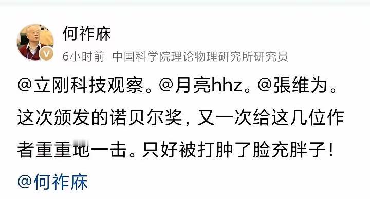 你不得不承认这个何祚庥老先生年纪虽然老,但精神头还是很足。对社会新闻就是敏感,任何事情都能激起他与别人斗的干劲。不愧是一个靠运动起来的口力科学家。 就这几天诺贝尔奖开奖他又开始到处与人东扯西扯。问题是现在国内可能没几个人去关心这个奖项吧。 你这个年纪嗨起来吗?