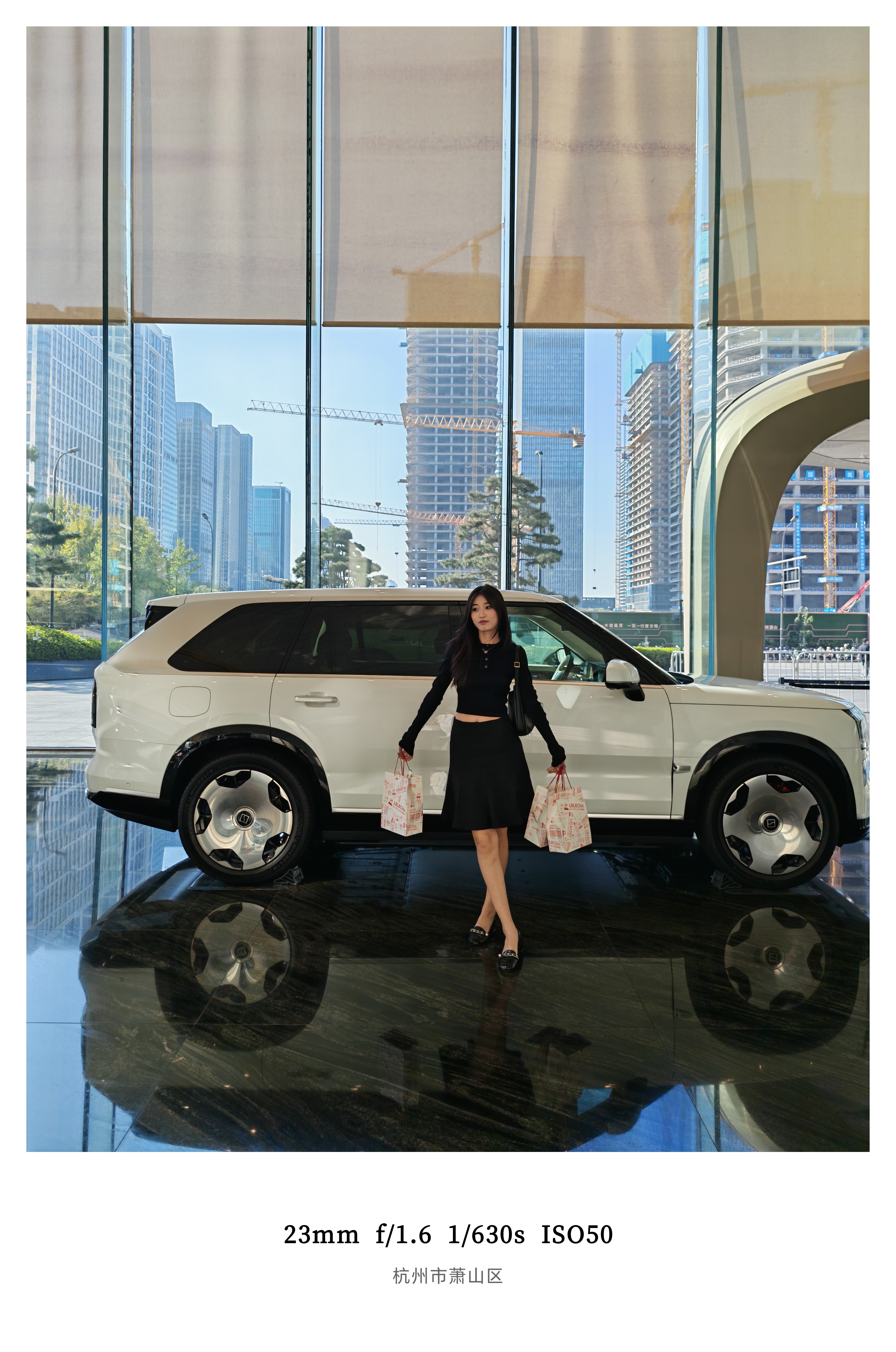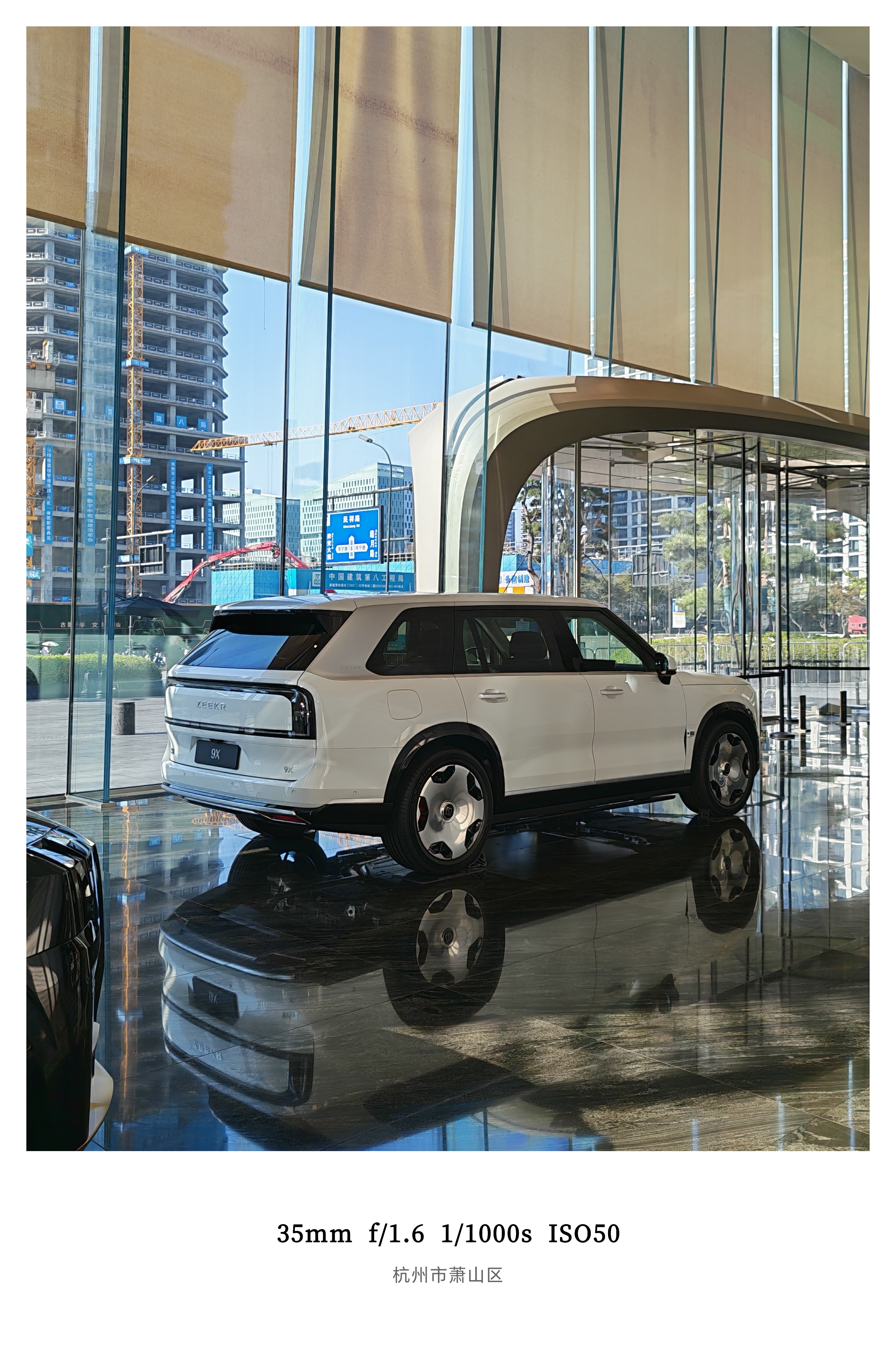该说不说极氪9X白色真的帅尤其配合亮银色大饼轮毂侧面体量感超级足把都衬托的小巧了