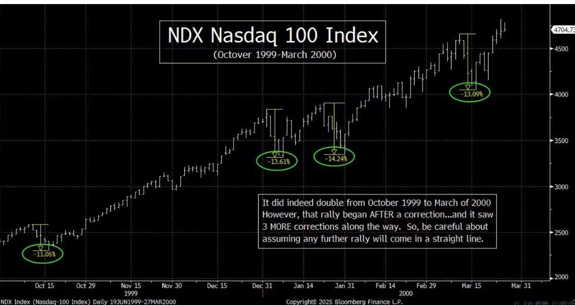 投资者谈论着类似1999年的股市崩盘,但当时的实际情况是这样的美股[超话]美股
