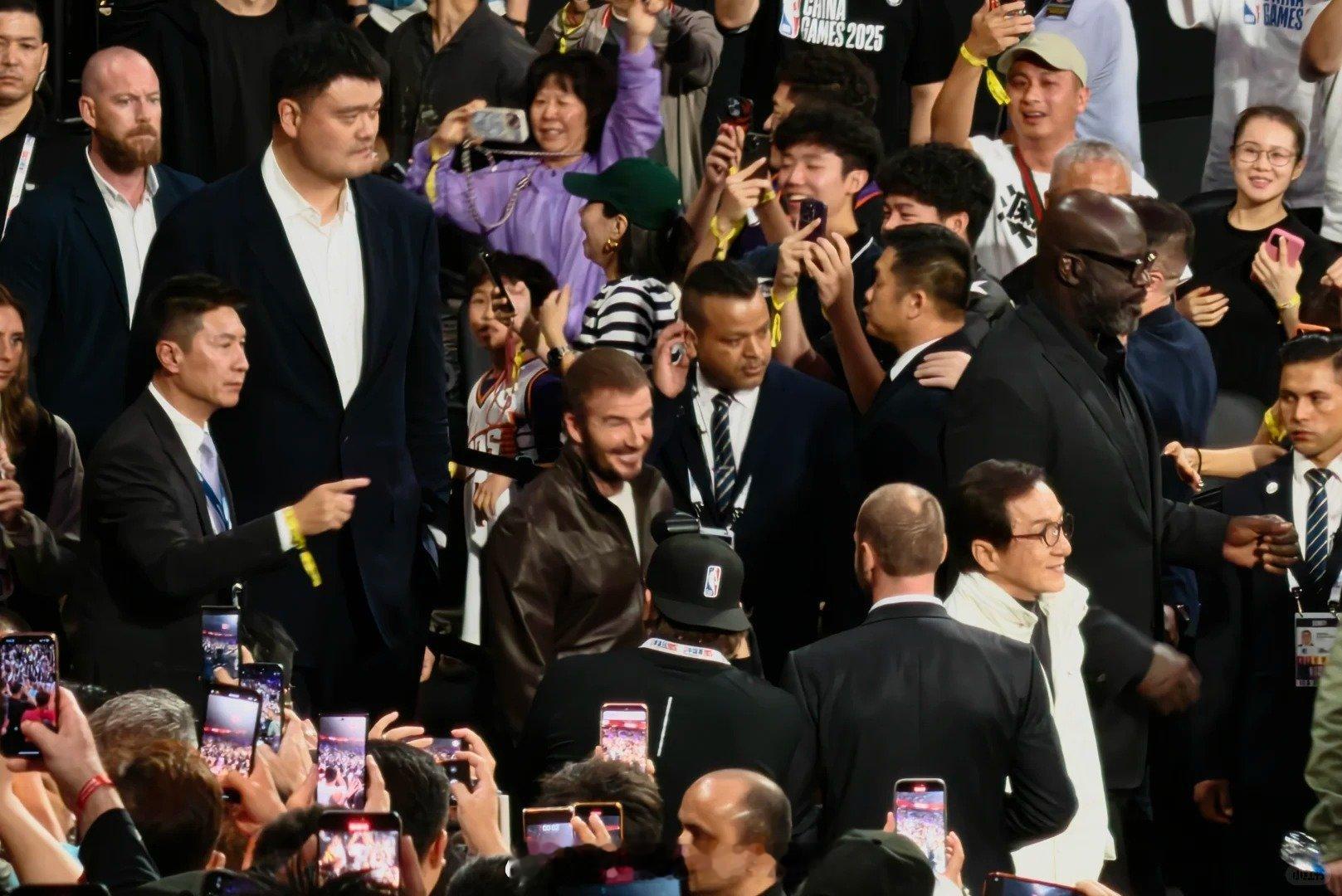 NBA中国赛世纪同框 NBA中国赛,真是大牌云集啊,成龙大哥也去了,奥尼尔也来了,姚明,梁朝伟夫妇,梁咏琪夫妇等众多明星大腕 篮网中国拉拉队亮相 NBA中国赛2025