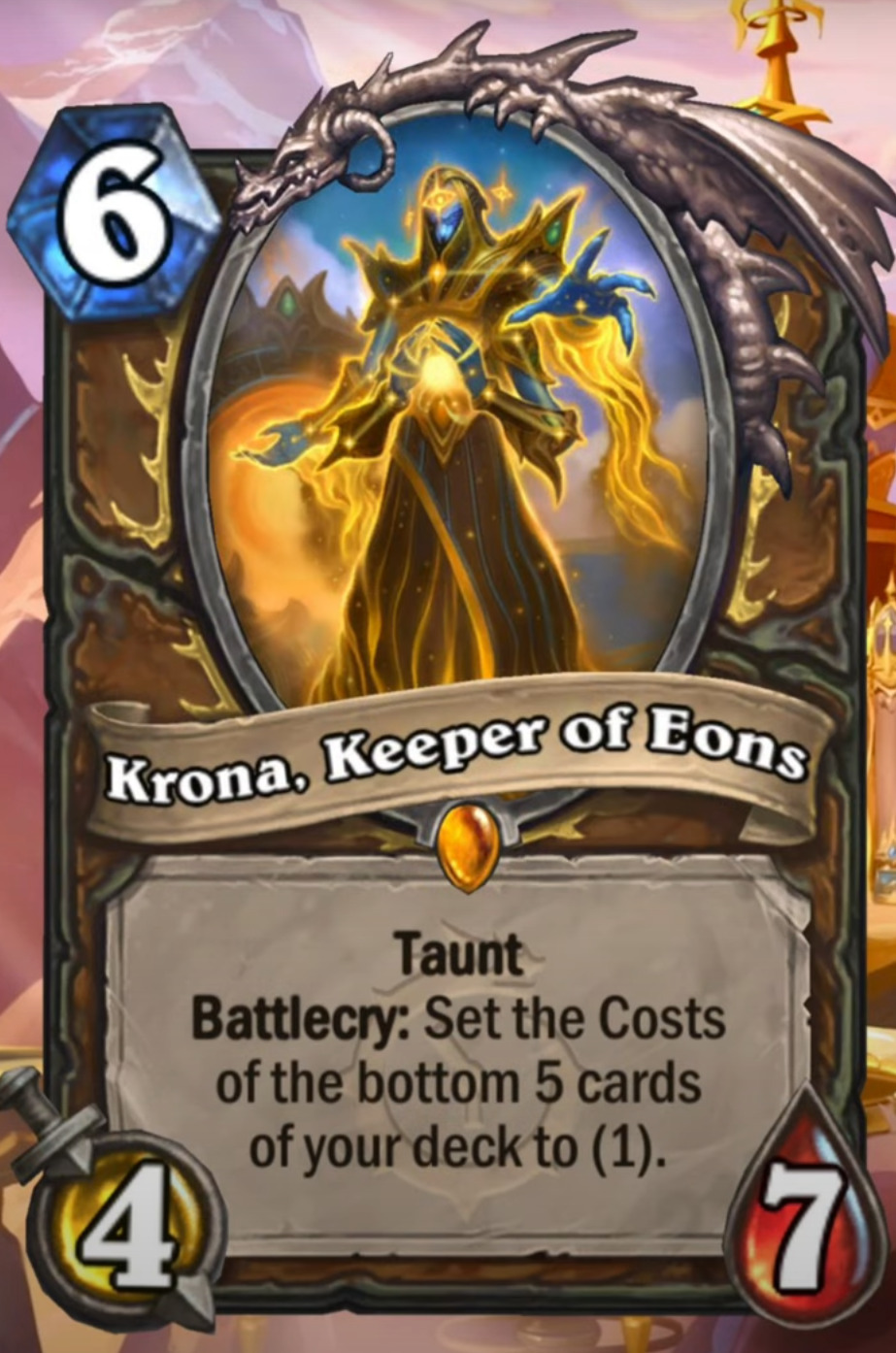 嘲讽。战吼:将你牌库底的5张牌的法力值消耗变为(1)点。