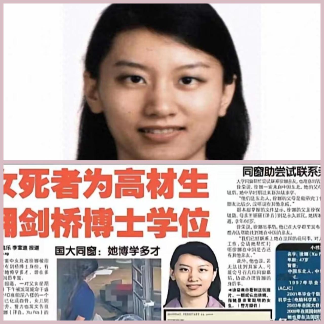 剑桥女博士死因曝光 不是死于疾病, 也不是因为感情出了大问题,竟是活活被饿死。 徐娜,新加坡国立大学本科硕士,2008年拿了剑桥大学博士文凭。 还在法国顶尖科研机构,做过三年科学研究员,妥妥的精英学霸。 但是,她不会独自买东西,不会点外卖,家里的吃喝用度全靠老父亲采购。 然而,老父亲9月初就走了,一下没人照料的徐娜,痛苦熬了一个月。 最后不是死于疾病,竟是活活被饿死。 有人说读书读到狗肚子里,连自己都养不活。真是可怜! 如果是精神疾病哪管你是不是博士? 越是敏感聪慧的人,说不定越容易陷进精神困境。 大家觉得呢?