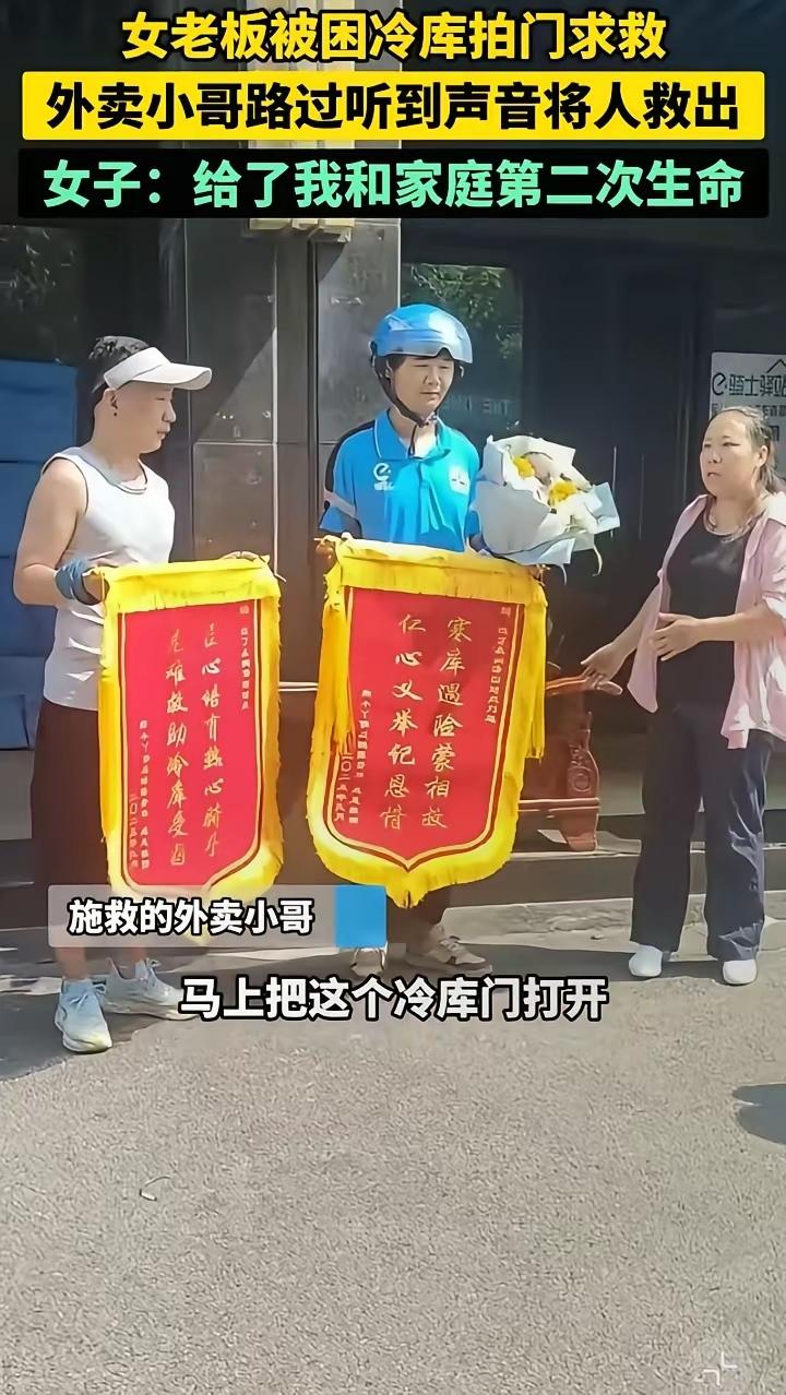 “你救我一命,我养你半生”老板娘被困冷库,被外卖小哥救出,为表诚意送上5%红利。善良淳朴的人总是被善待,勿以善小而不为,小小的举动,大大的能量。 44岁的老板娘去冷库取货,因为担心水汽打湿纸箱就关上了门,结果被困在零下30度的冷库整整20分钟。没有手机,孤立无援,她只能拼命拍门呼救,可外面却毫无回应,绝望感想必已将她彻底笼罩。 好在隔壁外卖站点的小哥刘旭听到了异常声响,寻声赶来,打开冷库门,把老板娘从鬼门关拉了回来。这看似简单的一个举动,却拯救了一条鲜活的生命,还有一个美满的家庭。 老板娘获救后,不仅送了锦旗、鲜花和红包,还直接拿出公司5%的股份,要和小哥一起分红,还当众认小哥做亲弟弟。这一幕真的太让人感动了!外卖小哥的善良和老板娘的感恩,完美诠释了“你救我一命,我养你半生”。 在生活里,很多时候我们可能觉得自己做的只是微不足道的小事,可就是这些小小的善意,也许就能改变他人的命运。就像外卖小哥刘旭,他可能只是出门抽根烟,却意外拯救了一条生命。 家人们,你们怎么看待这种善举呢?要是你们遇到类似情况,会像外卖小哥一样伸出援手吗? 评论区聊聊吧!