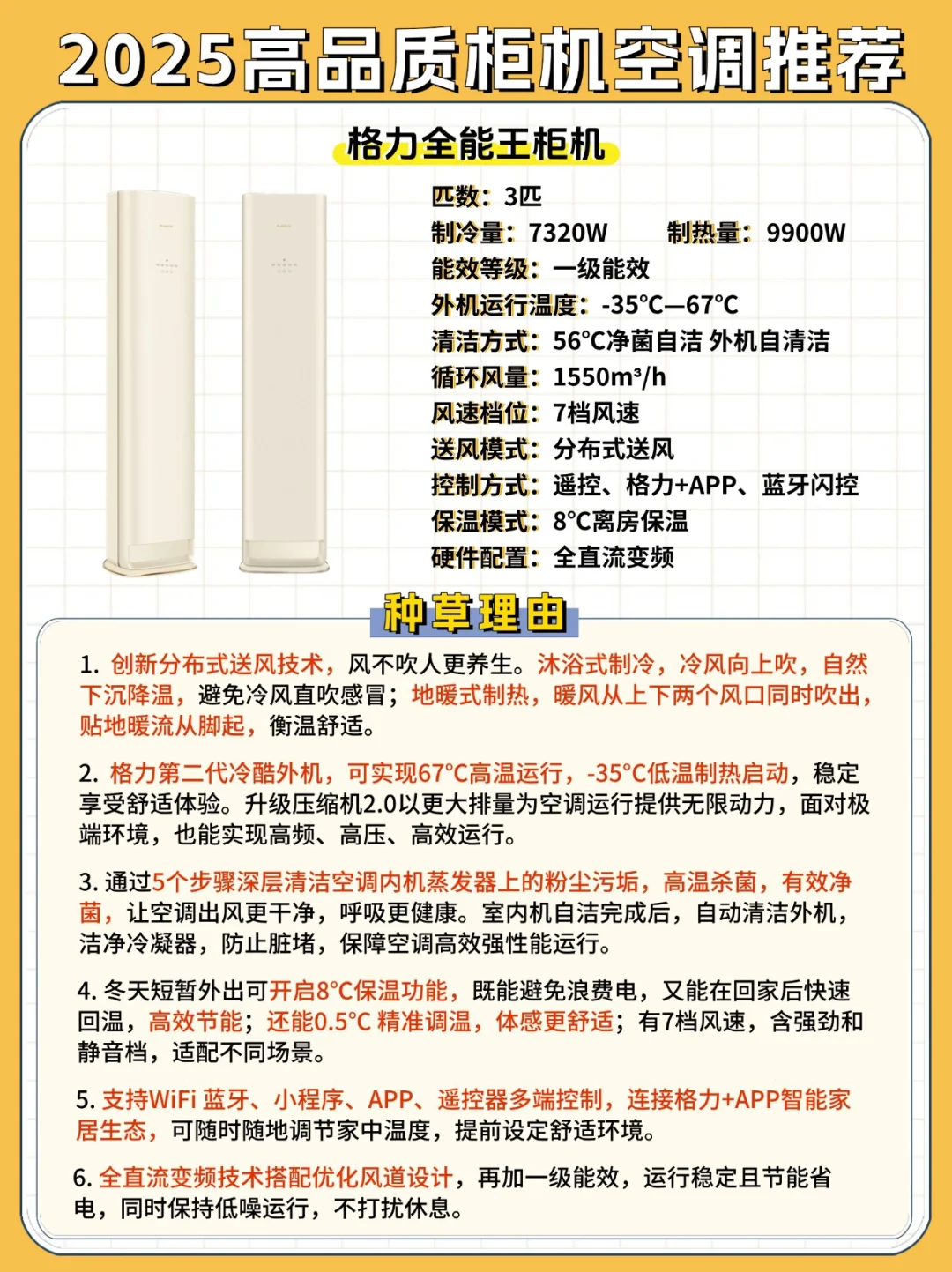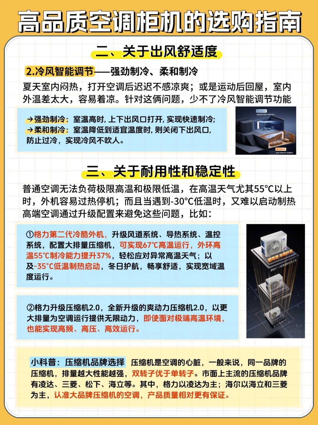2️⃣格力第二代冷酷外机,可实现67℃高温运行,-35°C低温制热启动,稳定享受舒适体验。升级压缩机2.0以更大排量为空调运行提供无限动力,面对极端环境,也能实现高频、高压、高效运行。