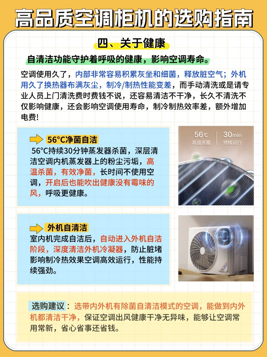 3️⃣通过5个步骤深层清洁空调内机蒸发器上的粉尘污垢,高温杀菌,有效净菌,让空调出风更干净,呼吸更健康。室内机自洁完成后,自动清洁外机,洁净冷凝器,防止脏堵,保障空调高效强性能运行。