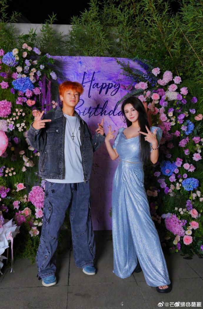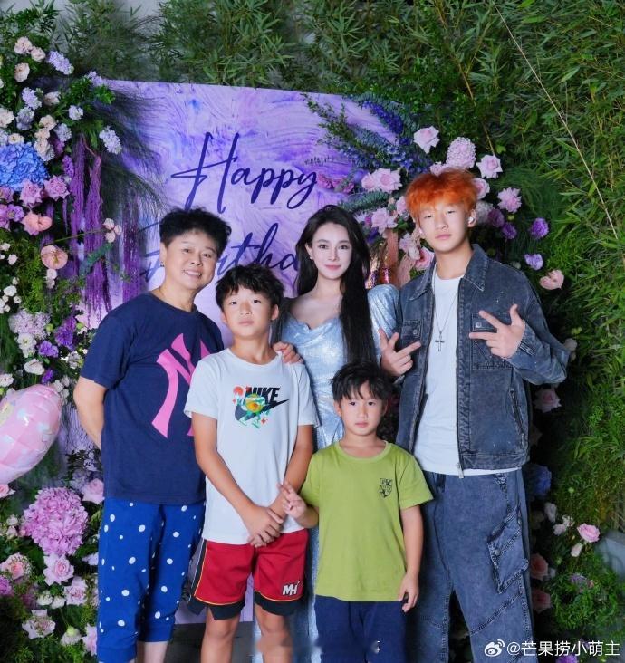 冉莹颖儿子橙发邹明轩橙发冉莹颖41岁庆生照,亲人好友一同为她庆祝,儿子邹明轩橙
