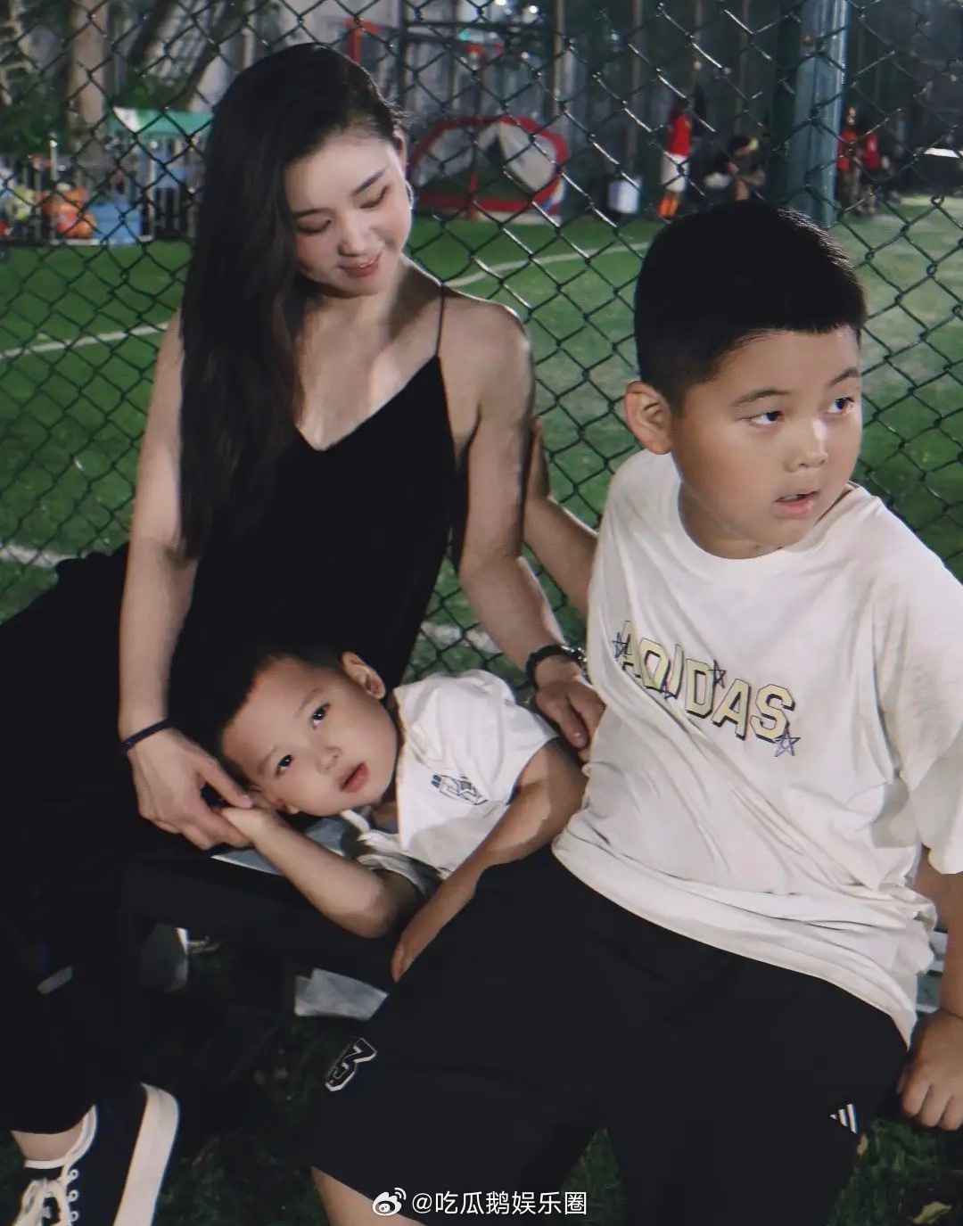 王雷带娃踢球,40岁李小萌穿吊带裙出镜又白又美,搂俩儿子像姐姐!