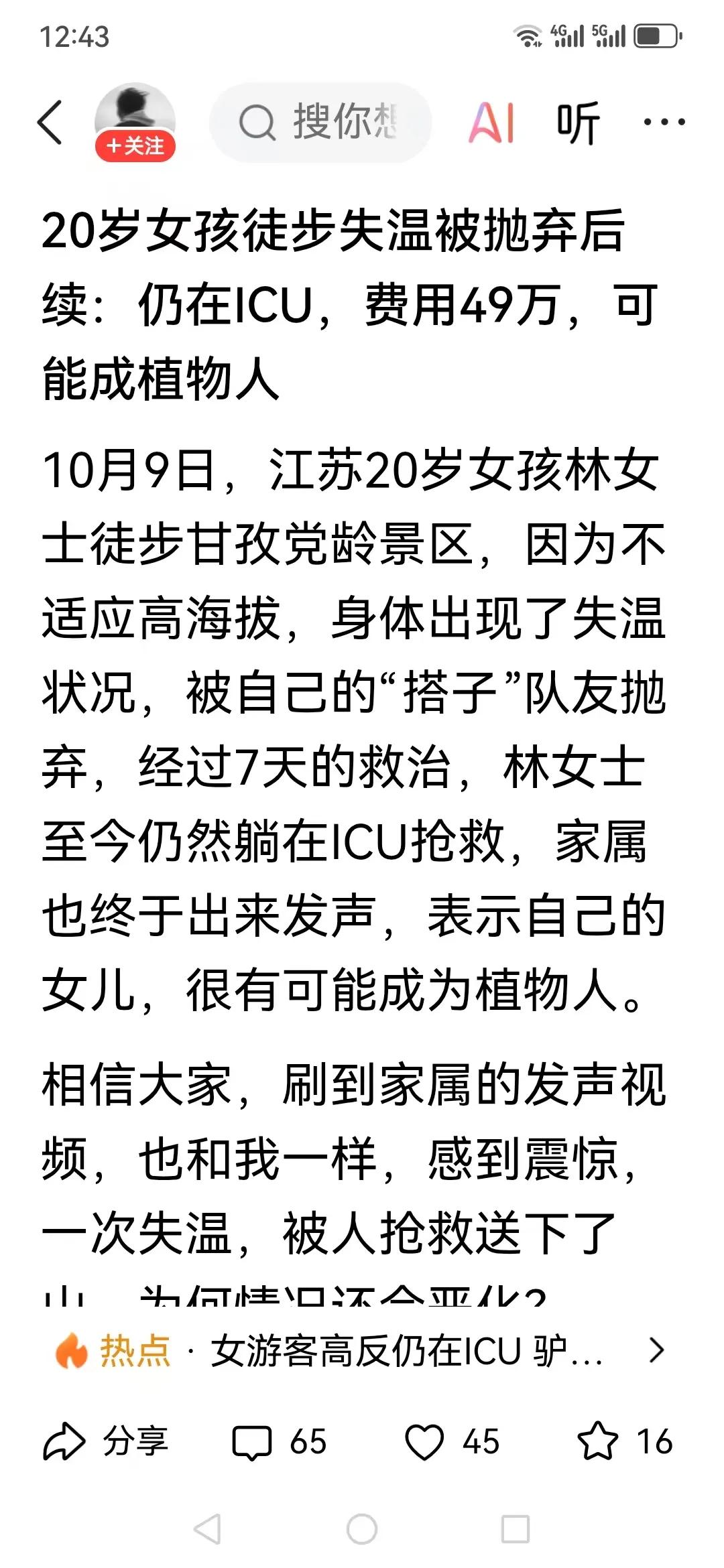我是一点都不同情这种人的! 看完这家人的诉求,我胸口像堵了块烧红的砖。 一个女孩跟网上认识的两个男人徒步,同伴走后她缺氧倒地。家人说自己是贫困家庭,要网友筹49万救女儿。可网友的质疑全戳在痛点上:同伴凭什么管?贫困家庭能买登山装备? 先说同伴的责任。大家都是网上凑的搭子,没签任何协议。根据民法典,自甘风险的活动,只要没故意害她,同伴不用担责。再算笔账:入门级登山鞋要五百,背包三百,帐篷睡袋上千,一套下来三千起步——贫困家庭一年收入才几千,哪来的钱买?更窝火的是平台审核:明明能查装备订单,能核家庭收入,为什么让这种请求过审?之前有个案例,有人筹钱治感冒,平台都没拦着。 为什么网友对这家人这么反感? ①同伴没义务,是她自己要跟陌生人走; ②贫困家庭的话骗不了人,登山不是穷人的活动; ③众筹成了“开口要钱”的工具,审核太松。 普通老百姓攒点钱不容易。我们愿意帮得了重病的孩子,帮遇了灾的家庭,但不想帮明明能自己负责的人。前阵邻居说,他亲戚用水滴筹治胃病,结果家里有辆十万的车。从那以后,他再也没捐过。 网友评论里有个说消防队朋友用水滴筹的——明明能自己凑钱,却要借平台免人情。这不是消耗善意吗?我觉得,这比撒谎更寒心——明明有能力,却要占“不用还”的便宜。 众筹是救急的通道,不是敛财的工具。要是连真实情况都不说,以后真有困难的人谁还信?贫困不是借口,撒谎更不对。就算要救孩子,也该堂堂正正说清楚:是自己选了登山,是自己没考虑风险,而不是把责任推给别人,把善意当提款机。 你遇到过类似的众筹糟心事儿吗?