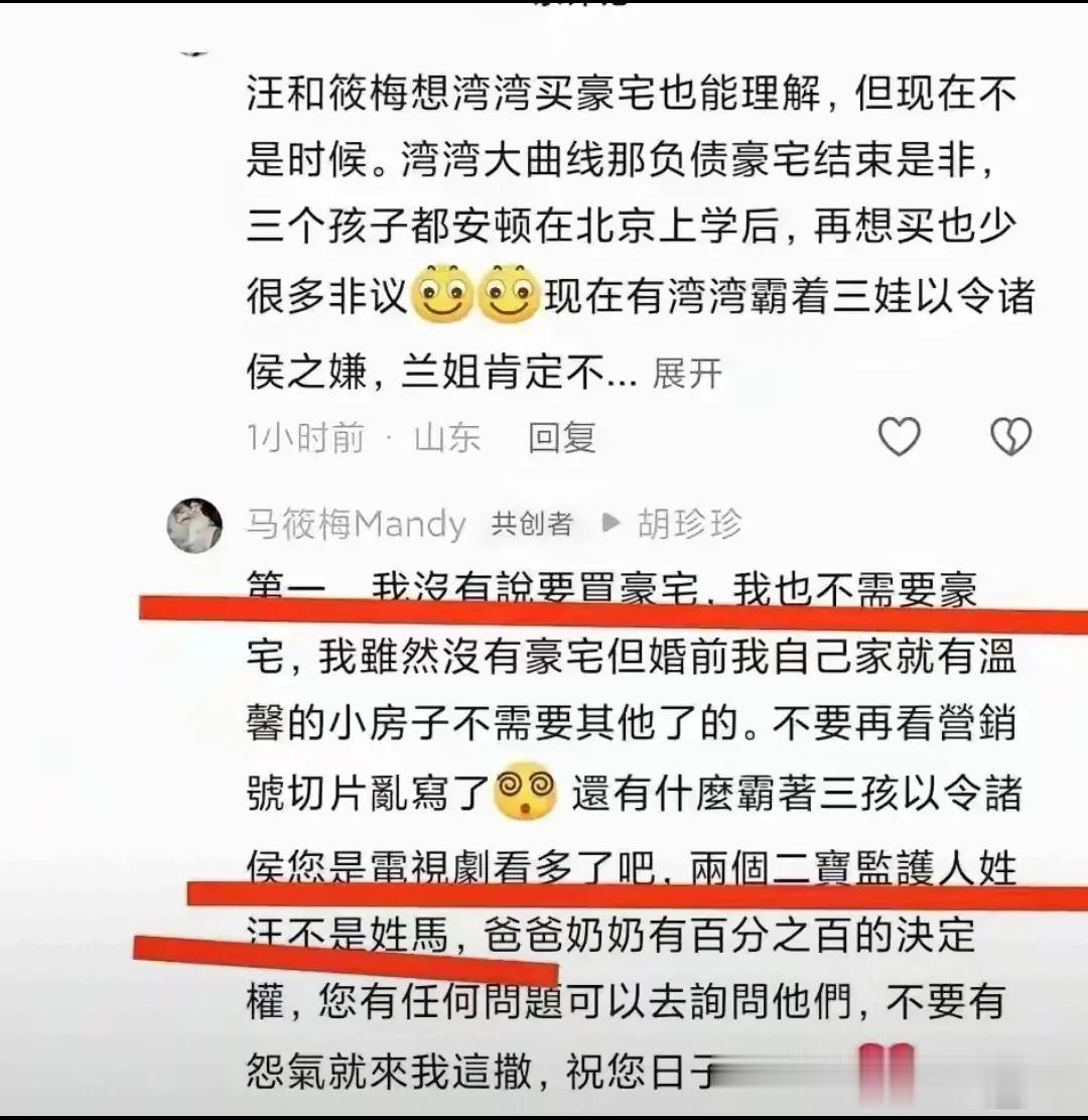另一个让马筱梅“破防”的点,是有网友劝她别急着在台湾买房。马筱梅当场反驳,说自己从来没说过要买豪宅,现在住的房子虽然小,但温馨够住。