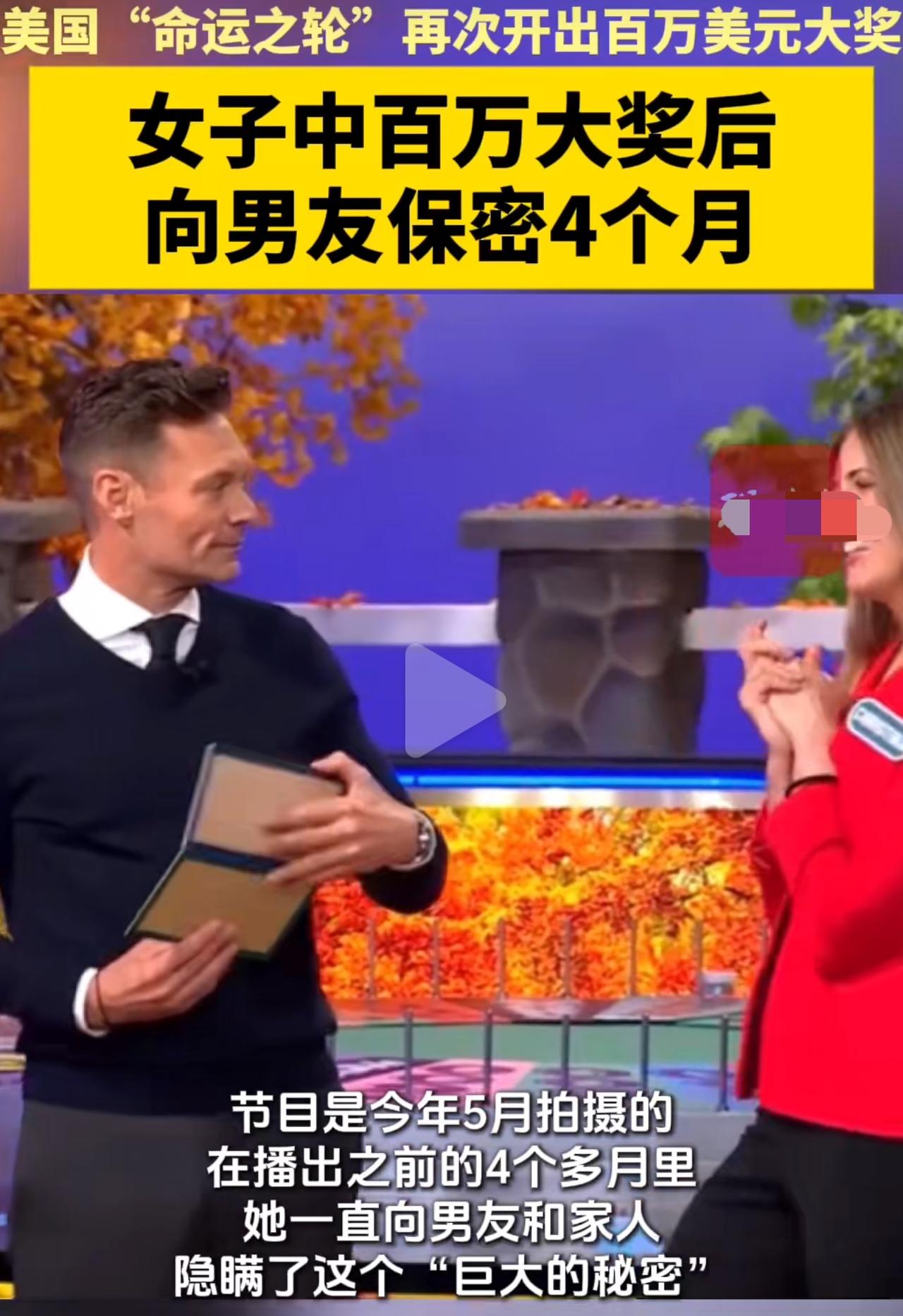 当地时间9月30日,美国知名电视游戏节目《命运之轮》迎来一场惊喜时刻——34岁的康涅狄格州女子克里斯蒂娜·德雷夫贾尼克,成功赢得1035155美元奖金,这一数额创下该节目近期开奖纪录。 鲜为人知的是,这场让她收获巨额奖金的节目录制,实际发生在今年5月。从录制结束到节目正式播出的四个多月里,克里斯蒂娜将这份“天降惊喜”悄悄藏在心底,既没有告诉朝夕相处的男友,也未向家人透露半分,始终维持着日常的生活节奏。 节目播出当晚,镜头捕捉到克里斯蒂娜得知中奖金额时的激动瞬间,而在现场观众席中,还有一位特殊的见证者——她的老板。这位老板亲临现场,与其他观众一同,见证了自己员工收获百万美元大奖的高光时刻。 面对这笔突如其来的巨额奖金,克里斯蒂娜在节目中明确表示,后续仍会继续目前的工作,并未因这笔意外之财改变原本的职业规划。截至节目播出后,她才向身边亲近的人逐步揭开这个隐藏了四个多月的“巨大秘密”。