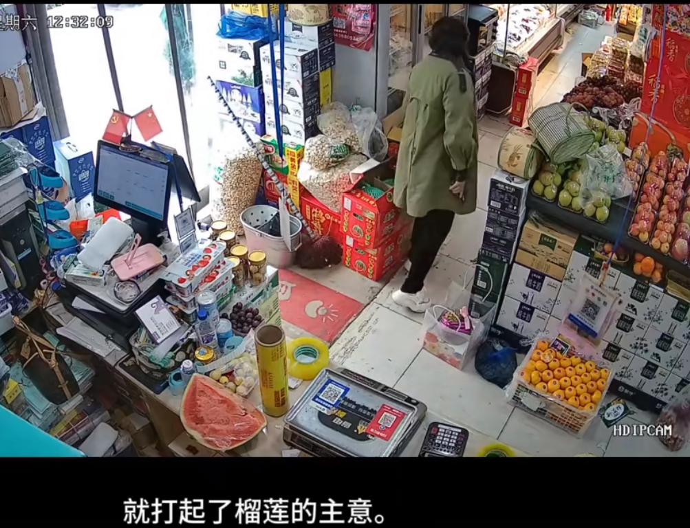 超市老板曝光一段大妈偷榴莲的精彩过程,到店门口,问摆在门口的水果多少钱,问东问西