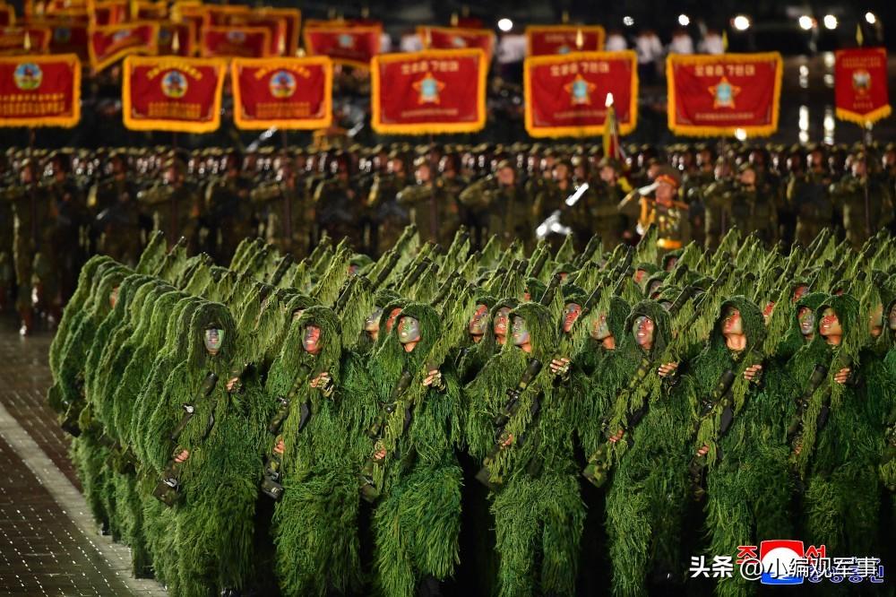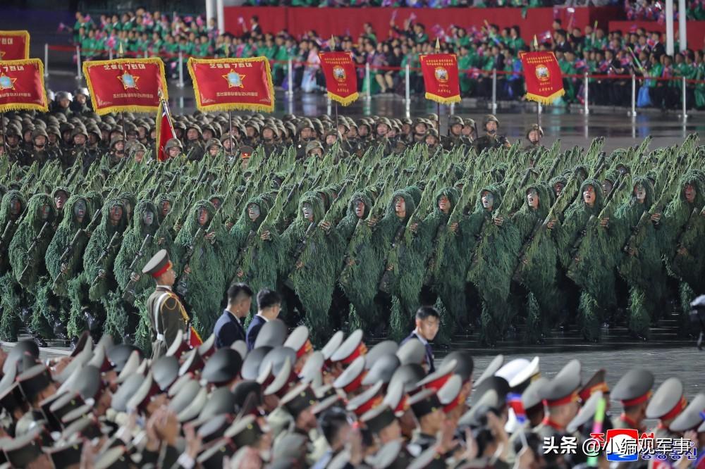 隐藏在草丛中的“战场幽灵”——朝鲜狙击手出现在昨天举行的阅兵式上。 朝鲜阅兵式