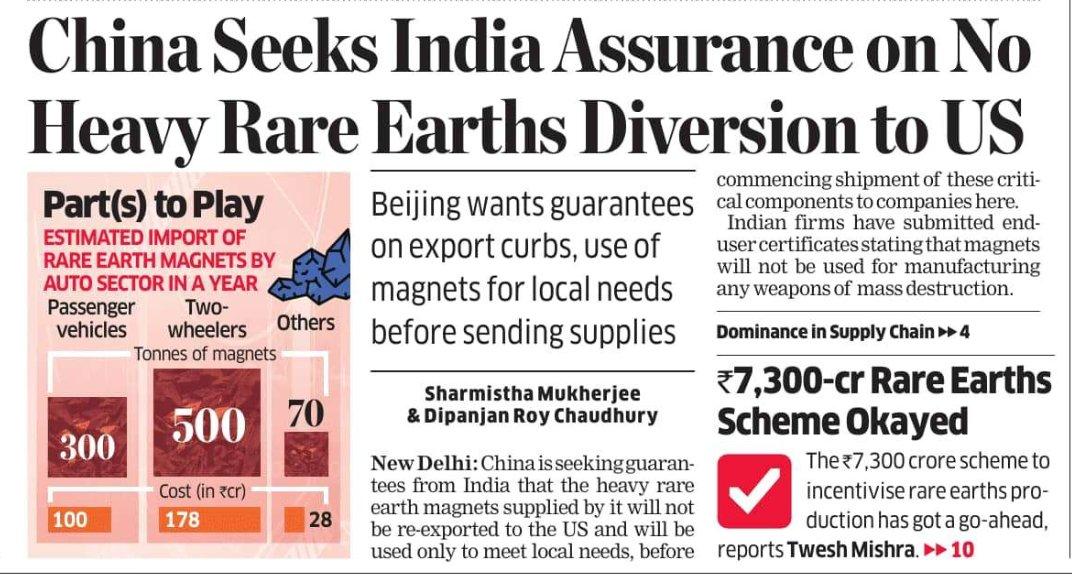 瞧瞧印度这口吻,听上去似乎是人家求着他: 【中国寻求印度对稀土不转手保证】——