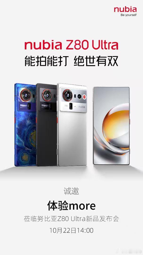 努比亚Z80 Ultra官宣10月22号,上了大底超广角,1/1.55 18mm。补上了超声波指纹和无线充电。