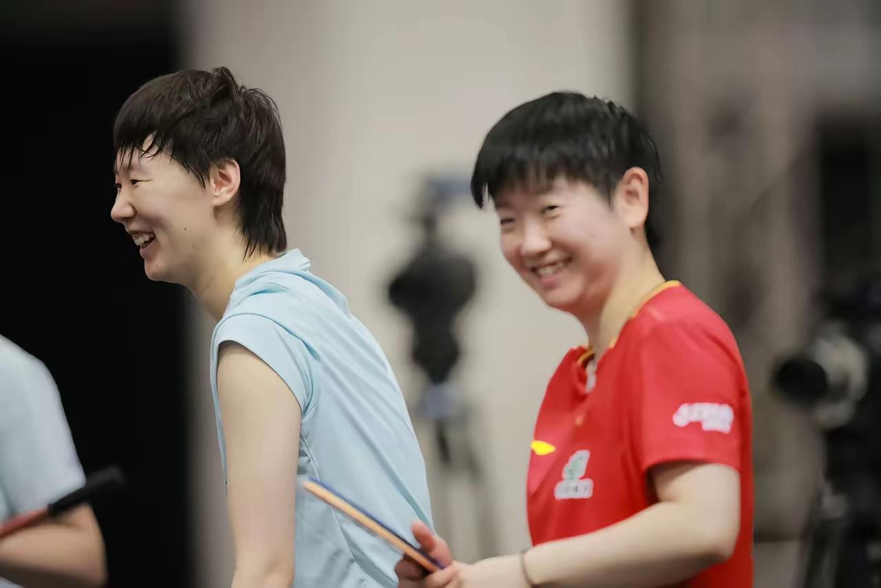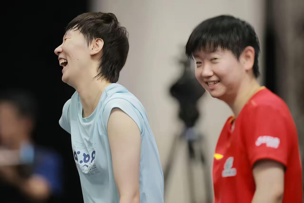 曼昱被莎莎惹得笑不活啦! 莎莎:曼姐,你瞧那个小帅哥(非印度人)盯着你,眼睛都不挪地方了(用手指轻指了一下,微笑)。 曼昱:莎莎妹妹,他那是看你呢(微笑)。 莎莎:不是,你仔细看,他分明是在直勾勾看你呢(大笑)。 曼昱:(仔细看了看,觉得好像是在看自己),那是看咱俩呢(大笑)。 莎莎:这次印度之行,球还没开打,你倒是收获不小呀(调侃式笑)。 曼昱:你不要开这个国际玩笑了,好不好?(大笑,笑得脖子都转过去了)。 旁白:海产姐妹不仅球打得好,而且关系非常好,网友们再不要替她们绝交了。