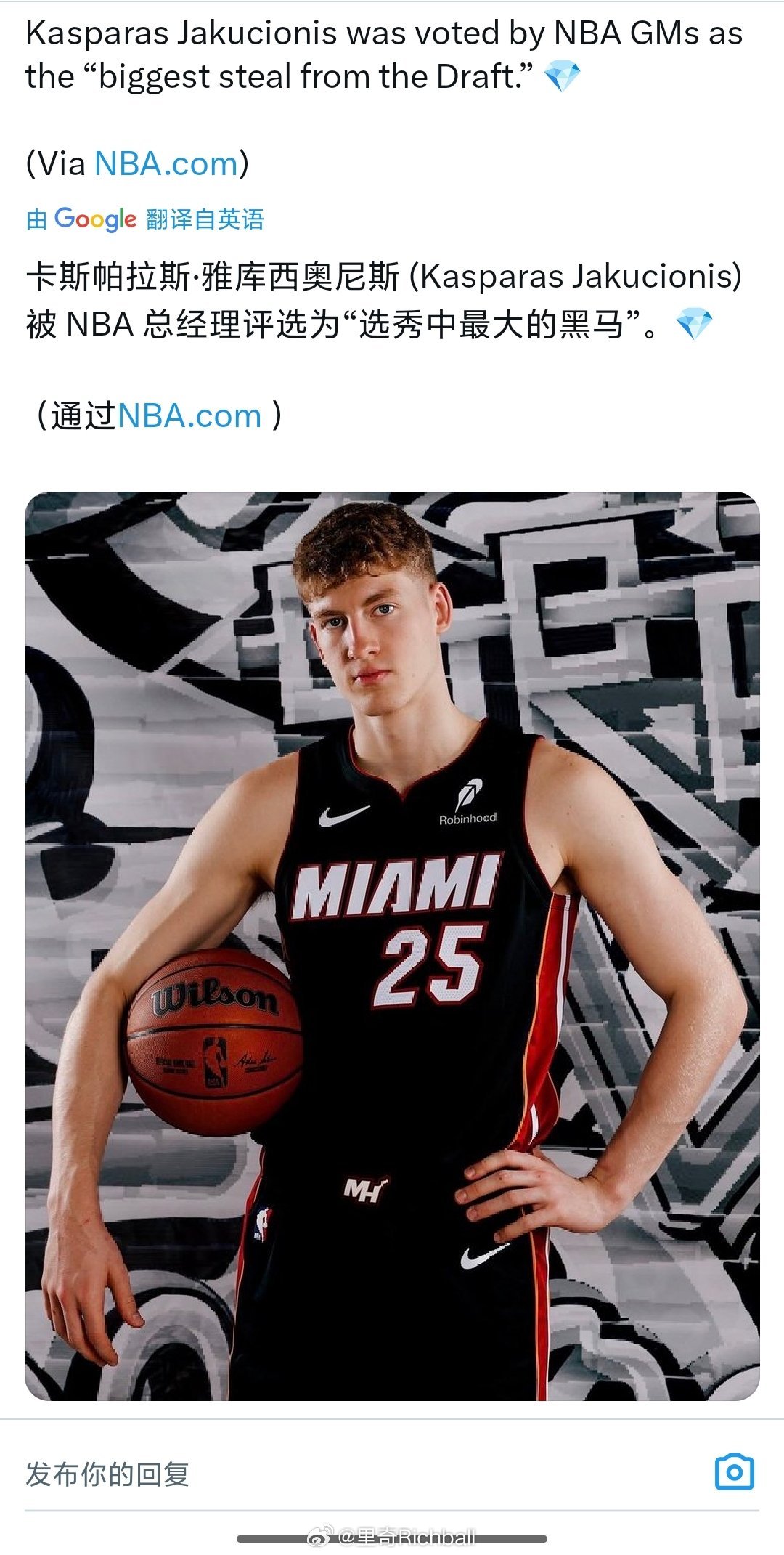 NBA总经理把雅酷评为本届NBA选秀最大的黑马