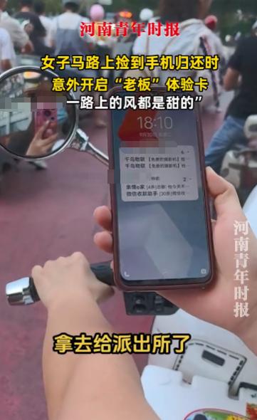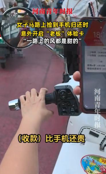 “笑不活了!”10月11日,广西桂林,一女子路上捡到手机准备送到派出所,手机界面一直弹出收款信息,金额早就超过了这部手机的价值,这让她也体验了一把当老板的感觉,女子直呼一路上的风都是甜的!网友:这分明是捡到了一张“老板体验卡”! 现在手机支付十分方便,不少老板、房东足不出户就能躺着收钱,这种感觉甭提有多爽了,很多人都想体验一把。 一女子在马路上捡到了一部手机,看手机的样式她以为是哪个老年人丢的,她原地等了一会,发现没人回来寻找也没人打电话,便准备骑电动车将手机送到派出所,谁知女子刚骑上车,手机突然弹出了几条收款信息,金额还都不小。 没想到这还没结束,女子骑车到派出所的过程中,手机界面还在源源不断弹出收款信息,前前后后大约有30多条,总金额早已远远超过这部手机的价值。 这可让女子体验了一把当老板的感觉,她边骑车边呲着牙笑,心情十分愉悦,听着收款消息的提示音,女子感觉一路上的风都是甜的。 网友们表示女子这哪是捡了部手机,这分明是捡到一张“老板体验卡”,归还手机的过程中她甚至比老板本人还要开心! 信息来源:《女子捡到手机归还时意外开启“老板”体验卡:一路上的风都是甜的》观象视频