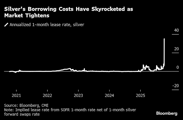伦敦的基准价格飙升至远高于纽约的罕见水平。交易者形容市场几乎完全失去流动性,任何做空现货白银的人都很难找到实物白银,不得不支付高昂的借贷成本,将仓位延期。