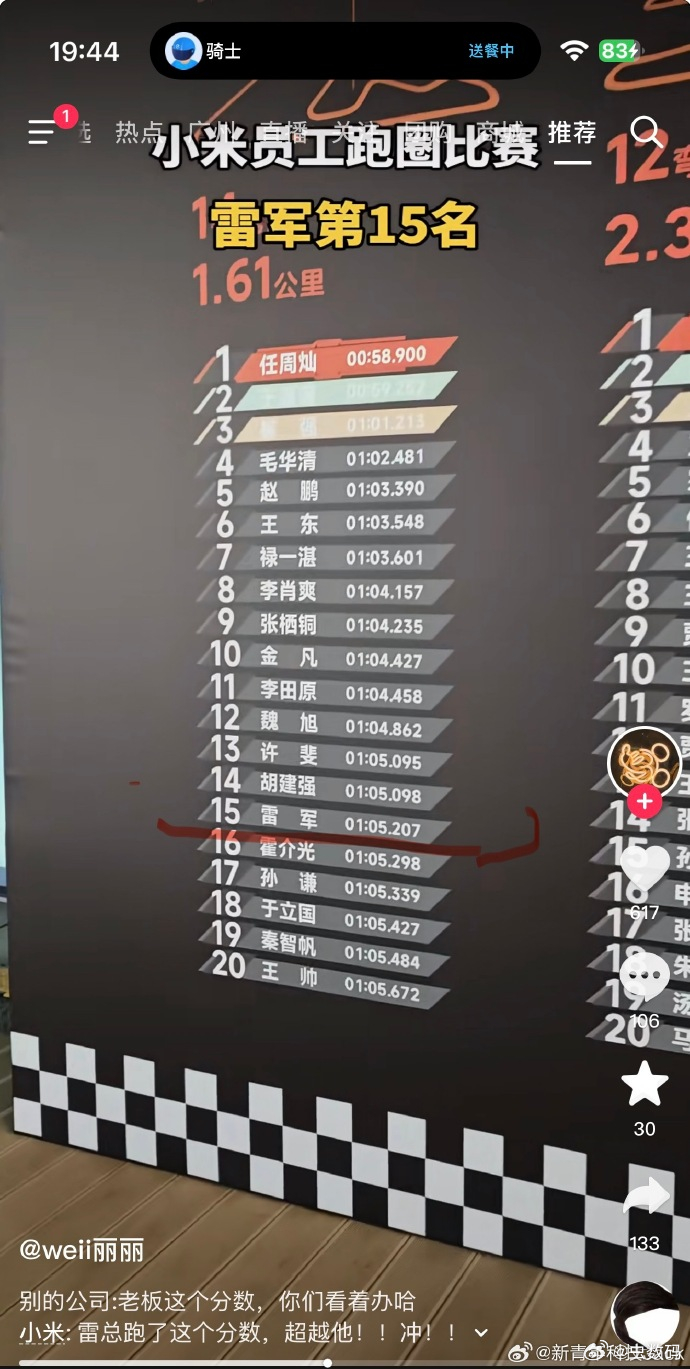 除了车展,小米还进行了员工跑圈赛,这对于灿哥来说,手拿把掐,第一是毫无争议的。金凡杀入前十。雷总才第15,说好的人情世故呢?这群人这是一点都不让着老板啊!