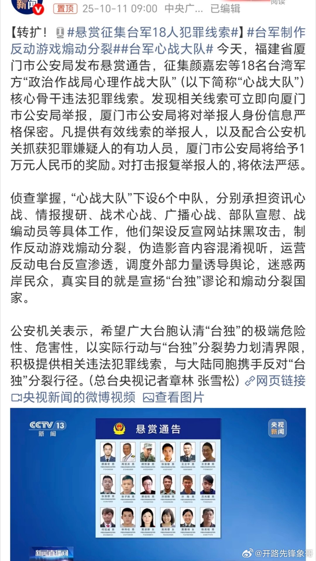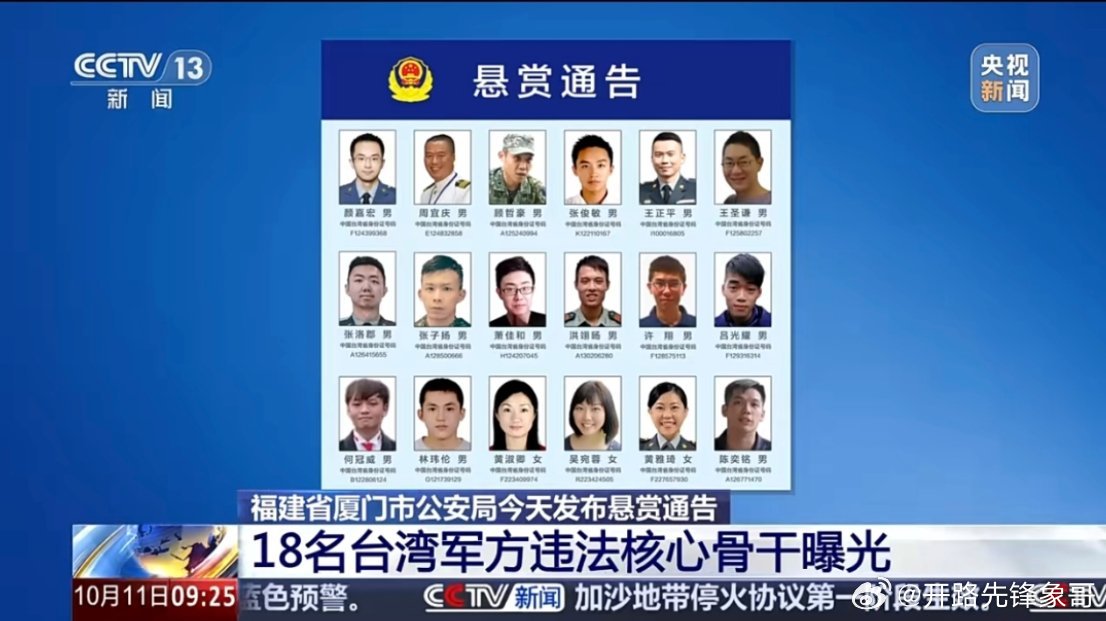悬赏征集台军18人犯罪线索不是只有这十八个,这只是个开始,后面的慢慢来不急,一个