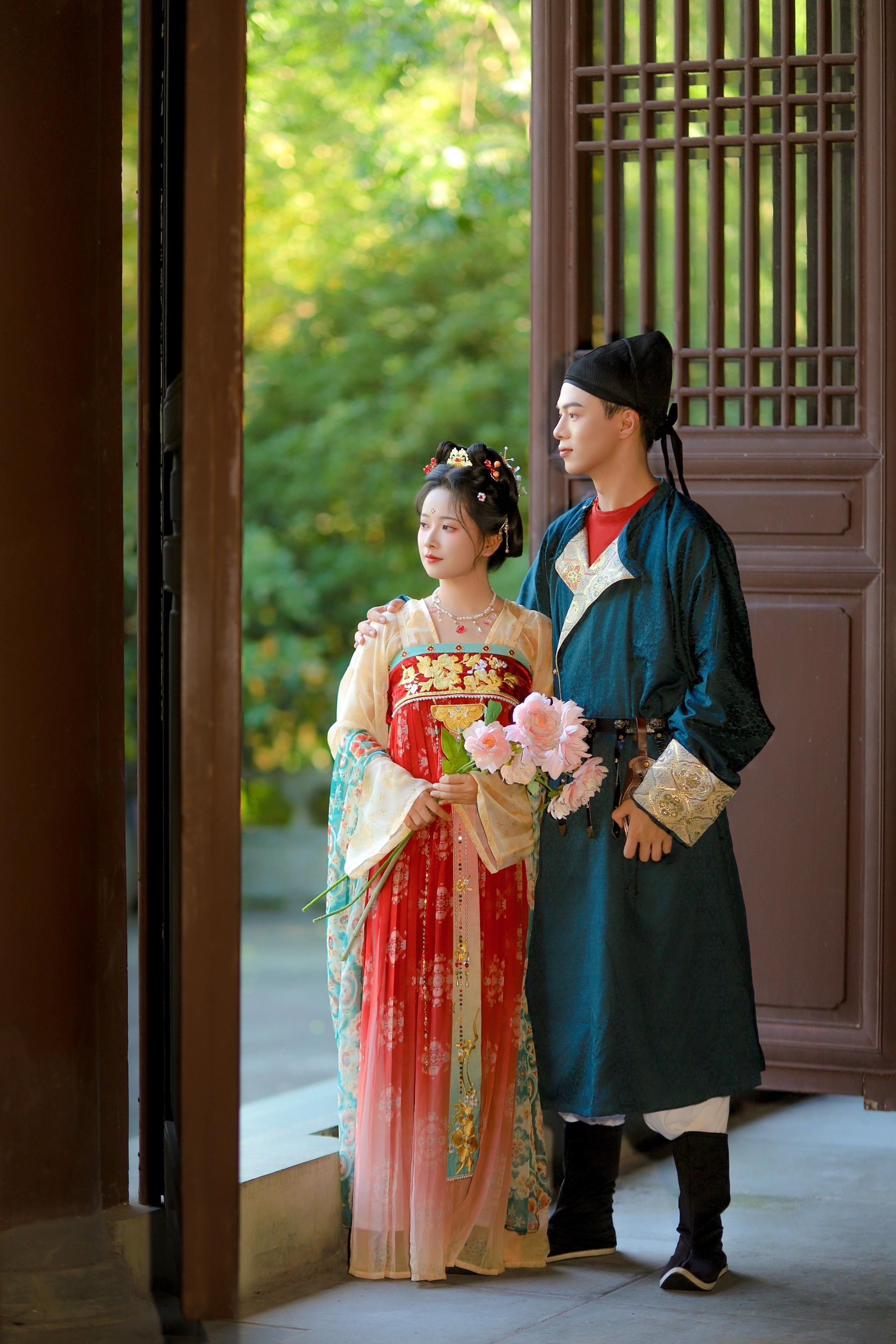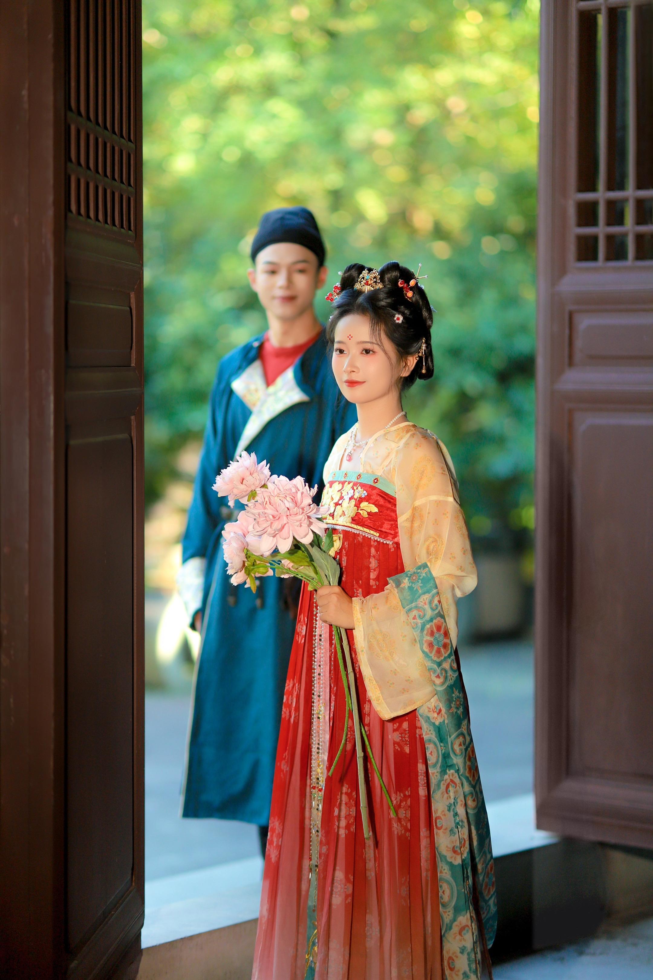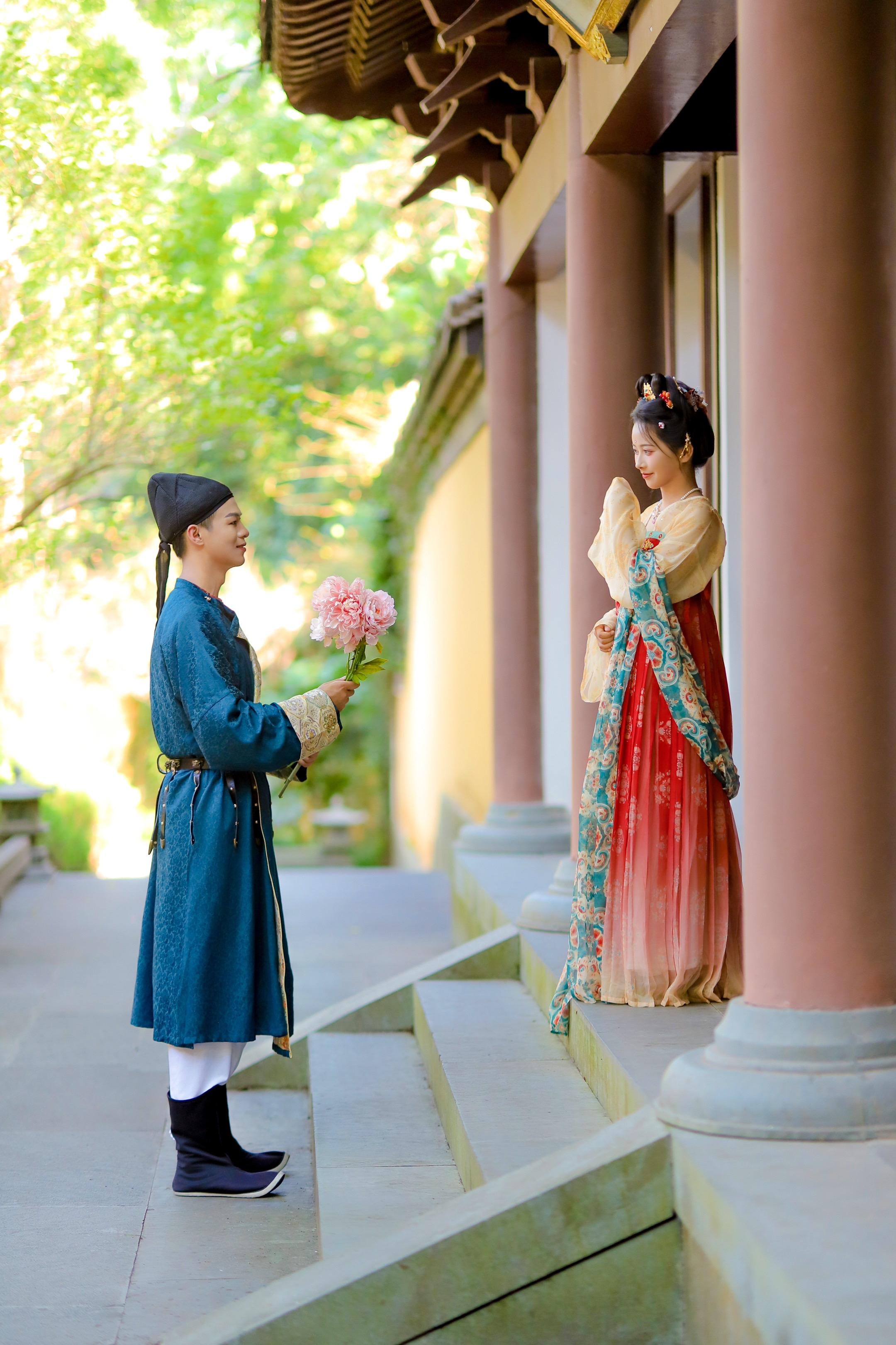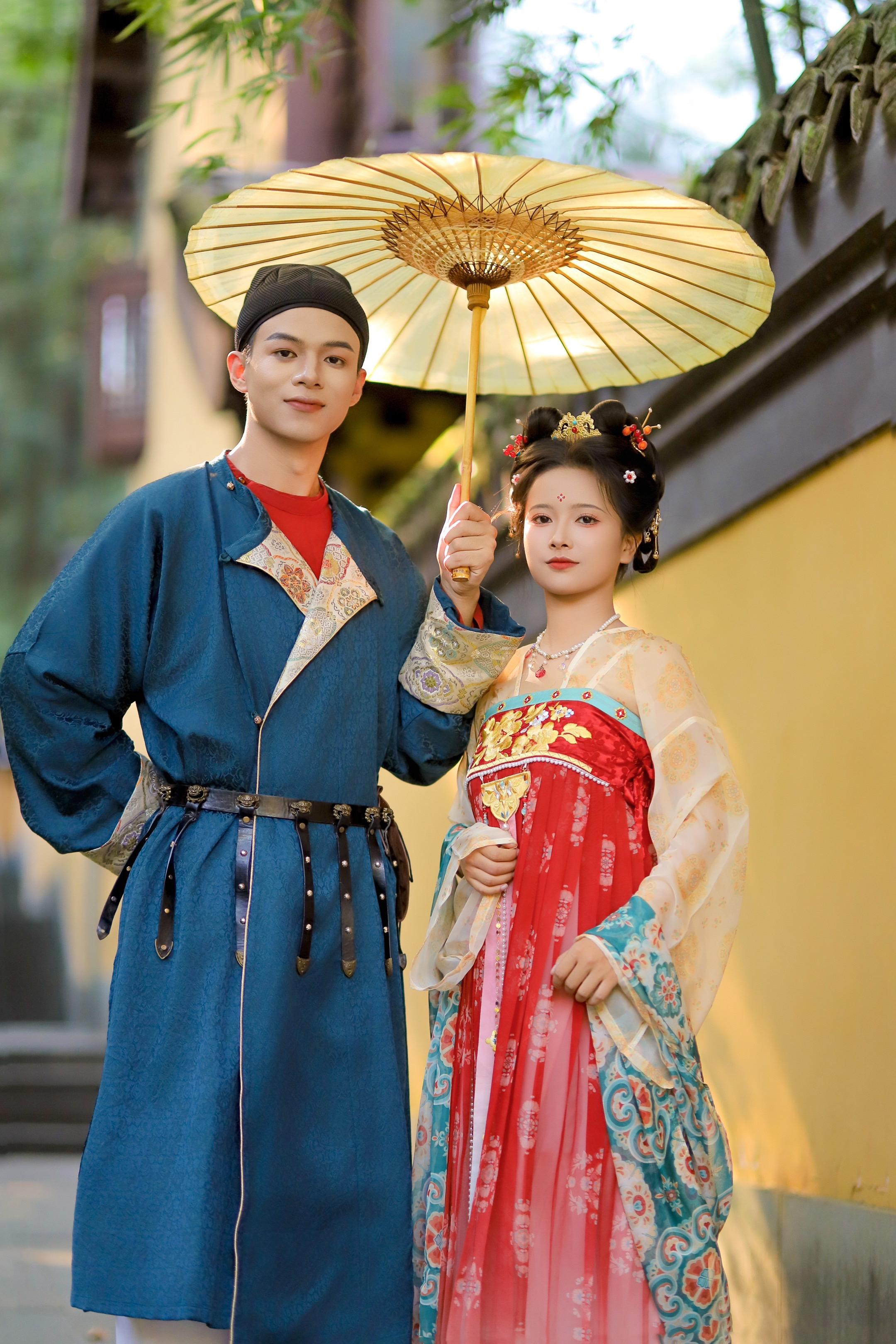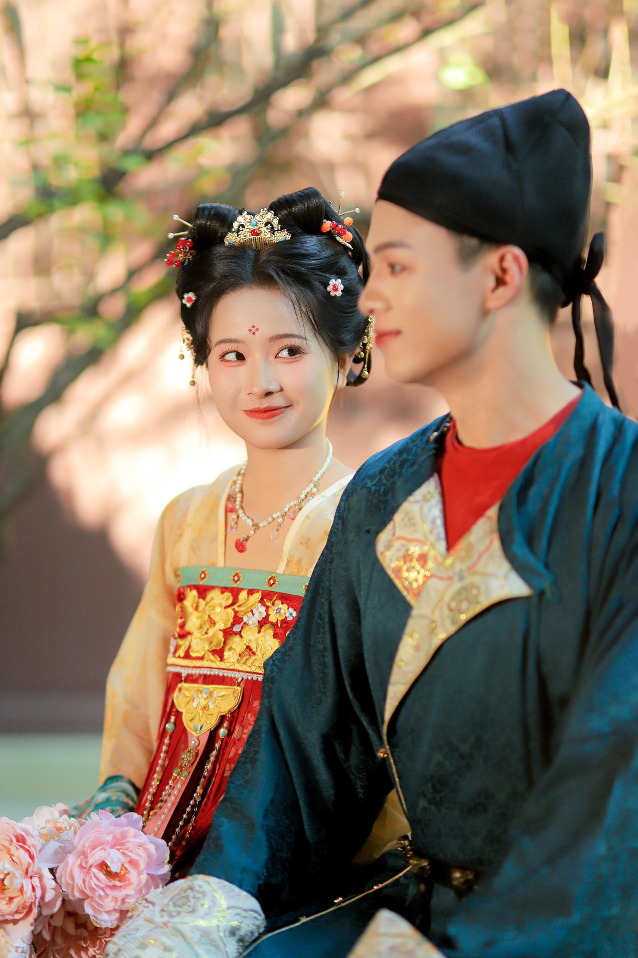 “你的沿途 ,从此不见我孤寂。”唐制汉服情侣写真。拍摄的时候小助理一直在说很像在看古偶😂