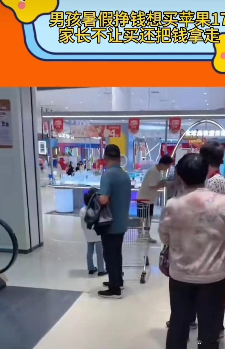 起初看视频的时候,是刷到苹果店,一男生对着他妈妈大吼大叫,非要买苹果17, 家里人不愿意花这钱。 甚至男生已经暴跳如雷了的地方,所有人都在谴责他,直到真正的原因一出来,我只想说,幸好没跟着骂人啊! 原来这男生确实想买苹果17,暑假二个月在一仓库做计件,自己打工赚钱,最热的两个月,只有风扇+干着最累的活,好不容易到手15000块。 打算自己花钱买手机的时候,被他妈妈把钱拿走了,说当他自己的学费,不买手机了。男生整个崩溃了,他这两个月的辛苦,图的就是想买个心尖上的东西。 看到这,我不知道谁对谁错?只看到有一个孩子对妈妈的失望。然而妈妈错了吗?妈妈只是伤了一个孩子的心,却也只为了减轻家里负担。 (图片来自网络视频)