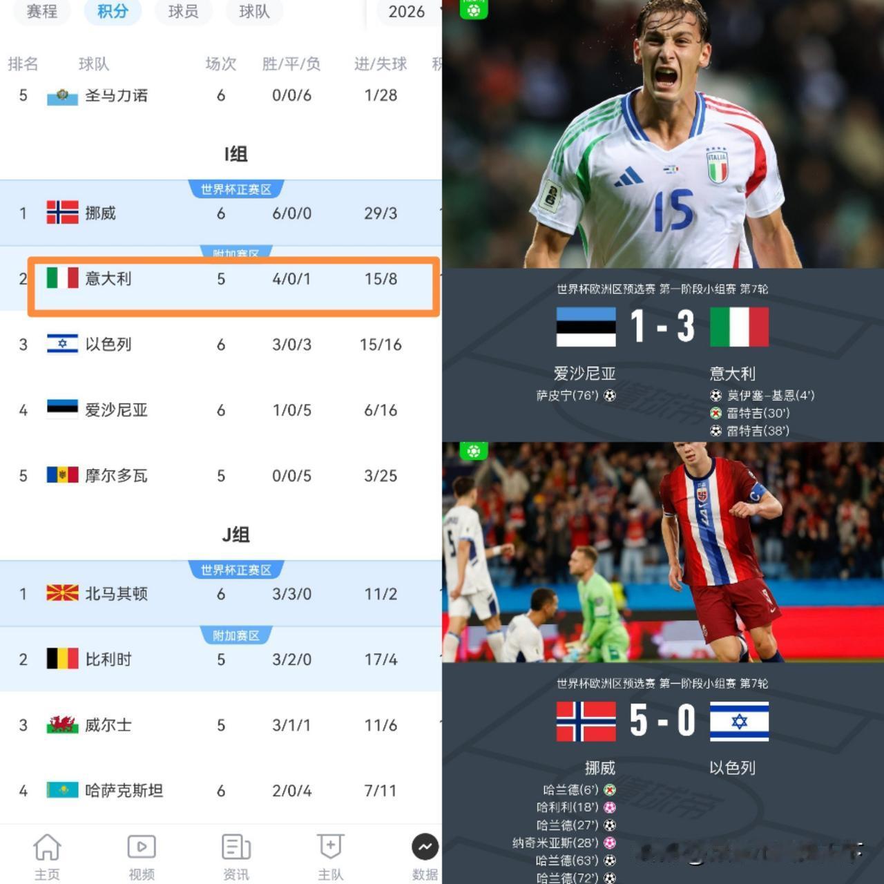 意大利还拿什么追?挪威积分领先,净胜球也遥遥领先,基本锁定小组第一直接出线了。