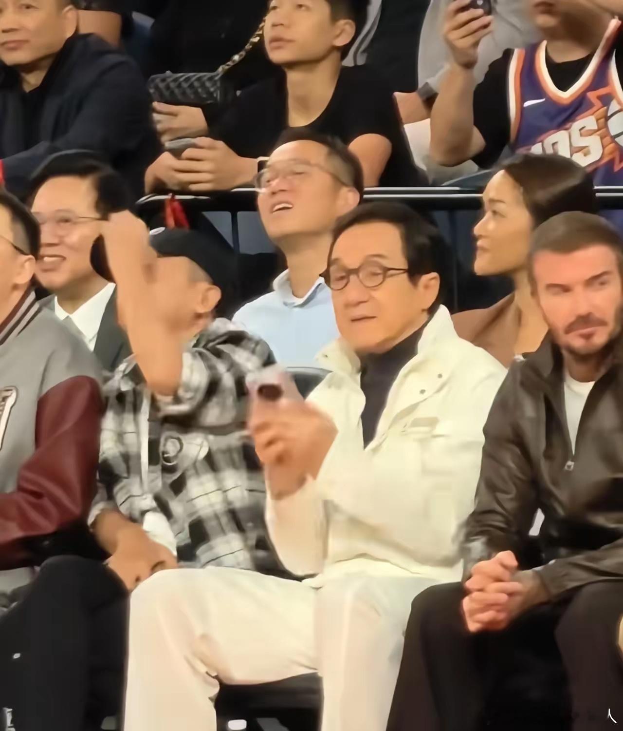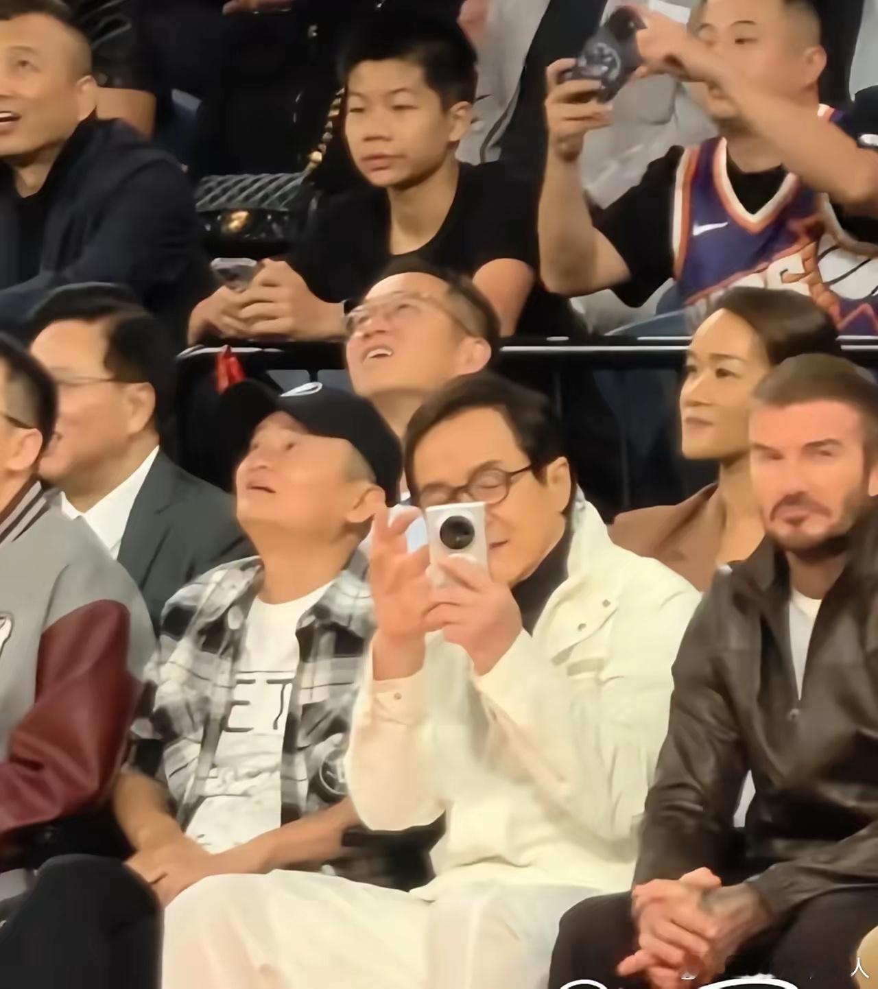 成龙现身NBA中国赛,拿的手机成亮点!