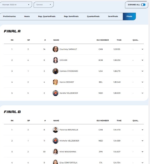10月11日加拿大蒙特利尔,短道速滑世巡赛首站首个决赛日产生四枚金牌,韩国和加拿大各获两金。